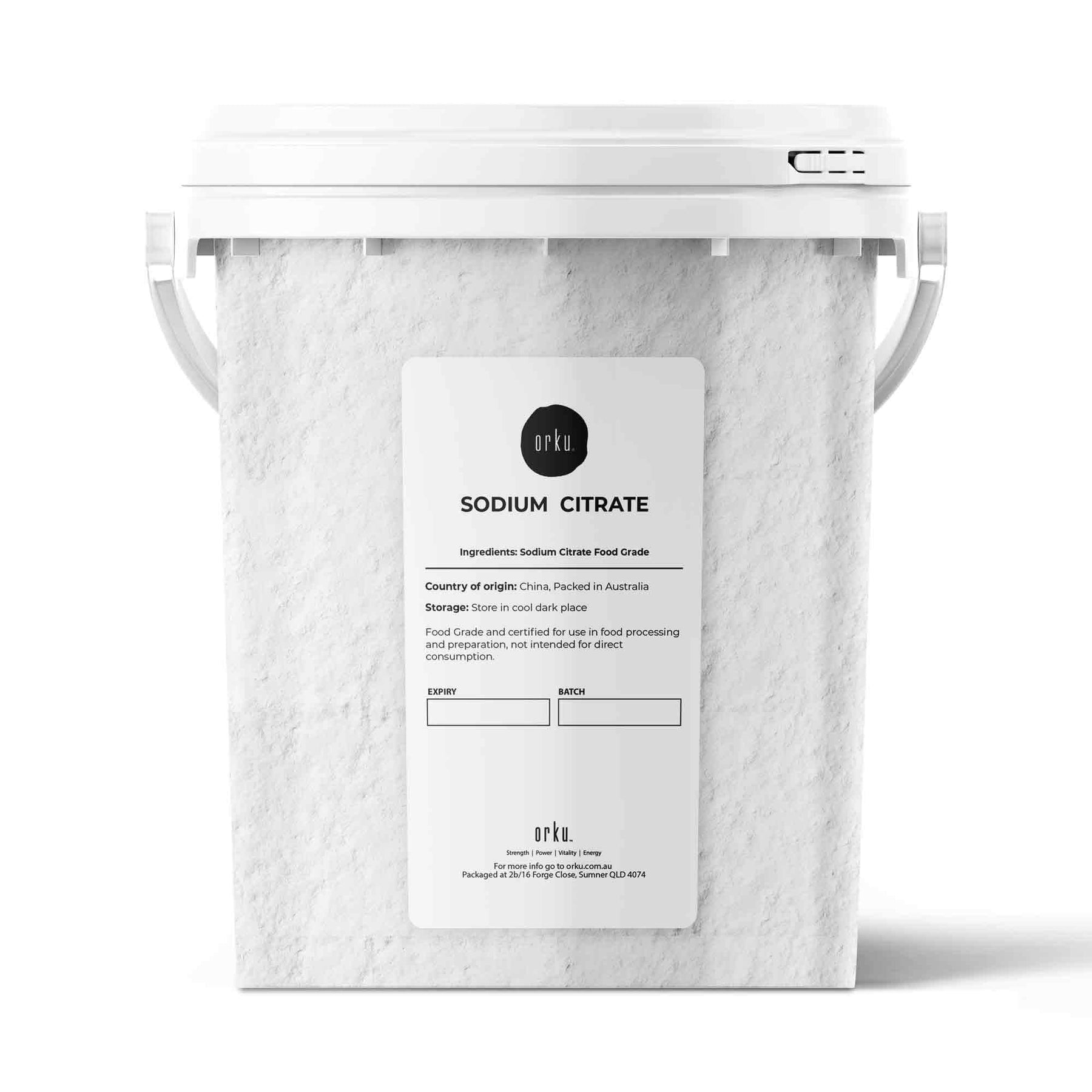 Sodium Citrate Powder in resealable bucket.