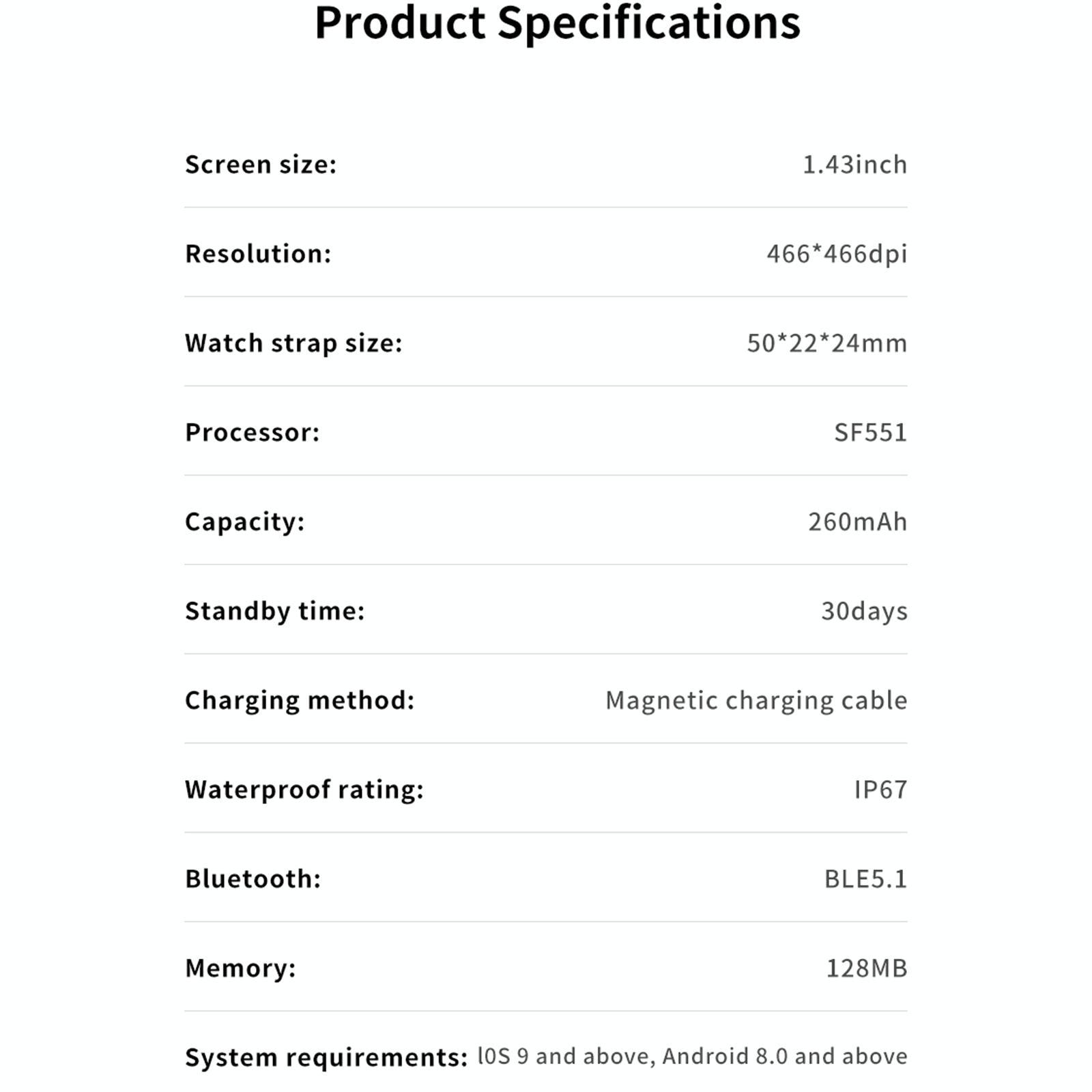 • 1.43 inch AMOLED LCD display with 466x466 resolution