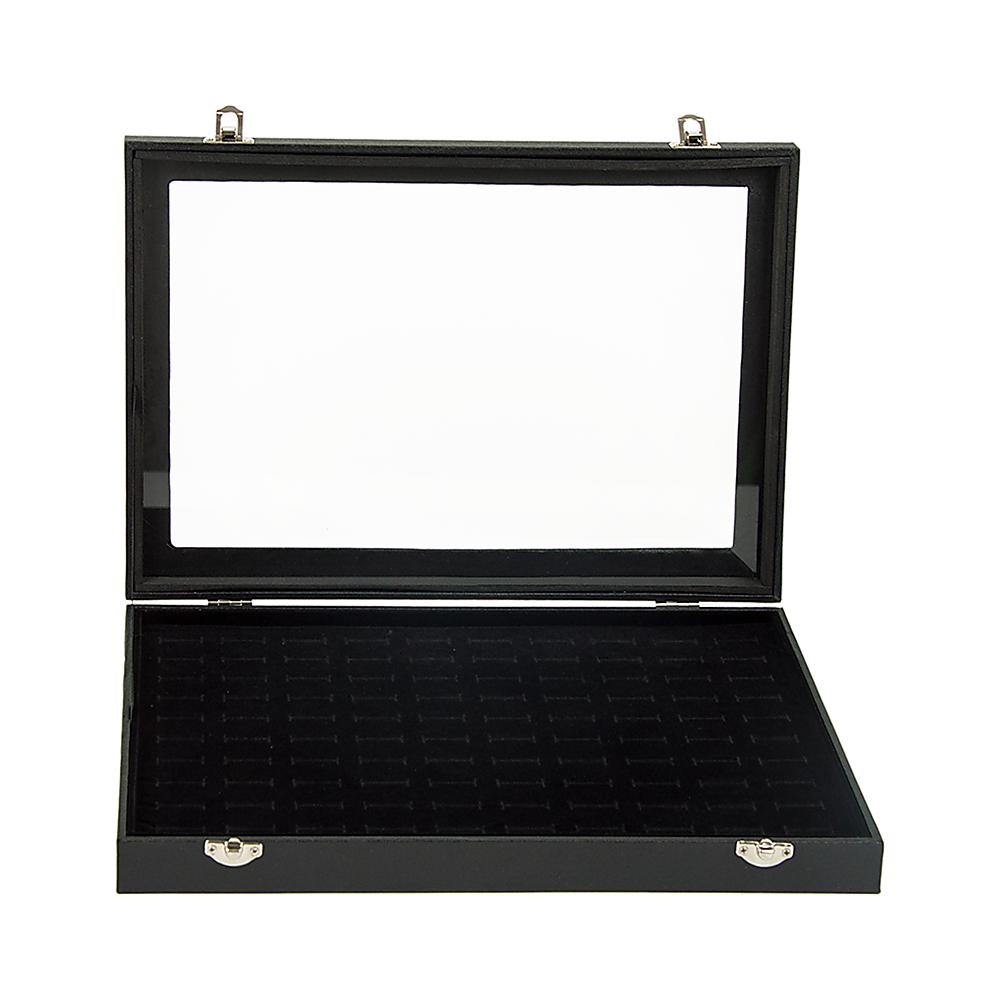 Never hunt through a tangled pile of jewellery to find your favourite rings or earrings again. With this elegant jewellery organiser by Randy Travis Machinery, you can find the pieces you need in a single glance. Its transparent glass top both protects and displays your neatly organised rings, earrings, and other jewellery, all showcased against luxurious black velvet. Holding up to 100 rings, this premium-quality jewellery box keeps your entire collection dust-free yet completely visible.