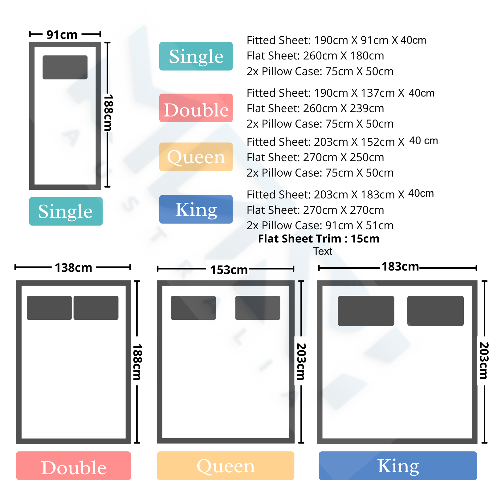 | Set | 1 x Flat sheet 1 x fitted sheet 2 Pillow Covers | ||