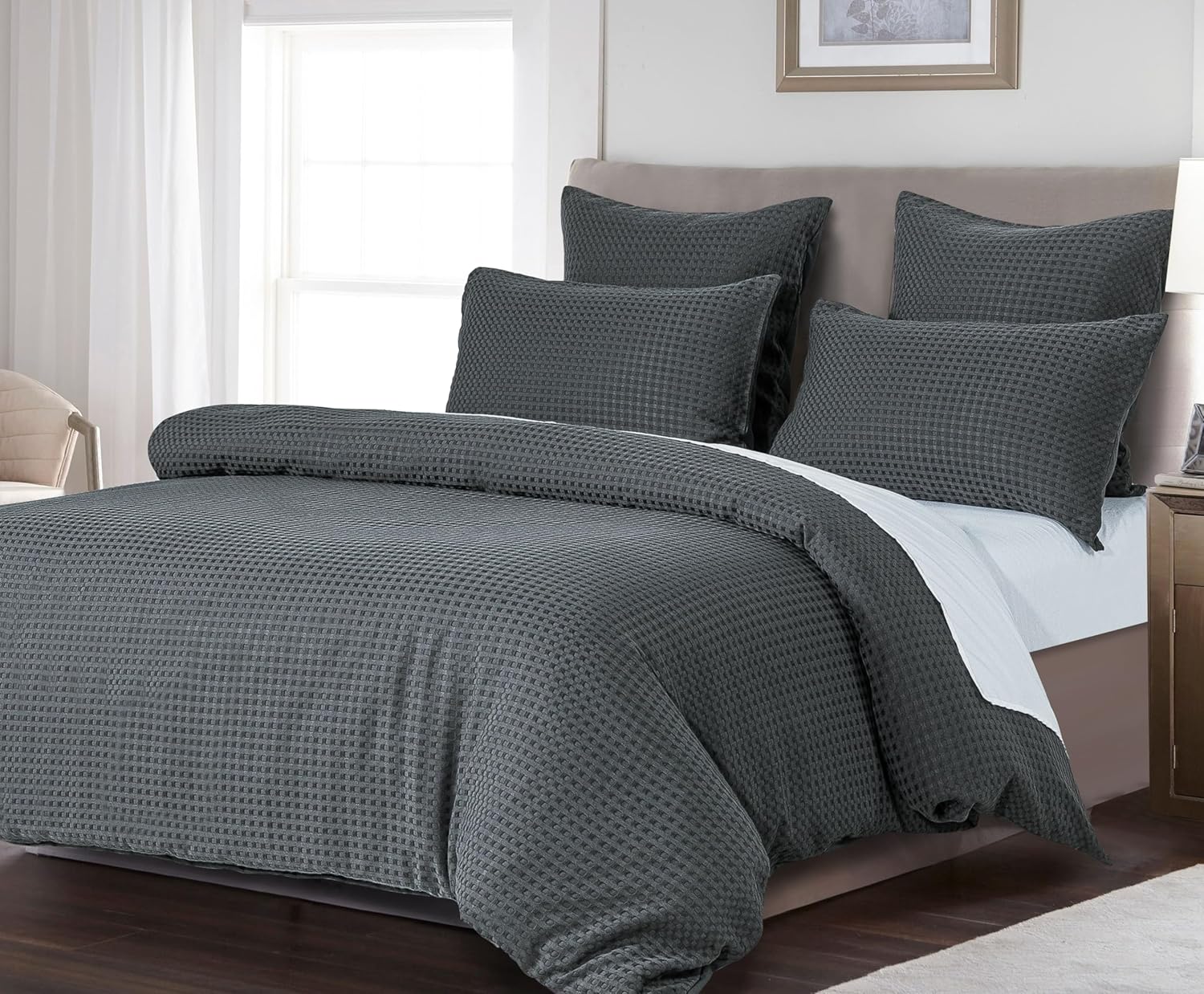 • Elegant Waffle Pattern: The chic waffle pattern elevates the look of your bedding ensemble with a touch of class.