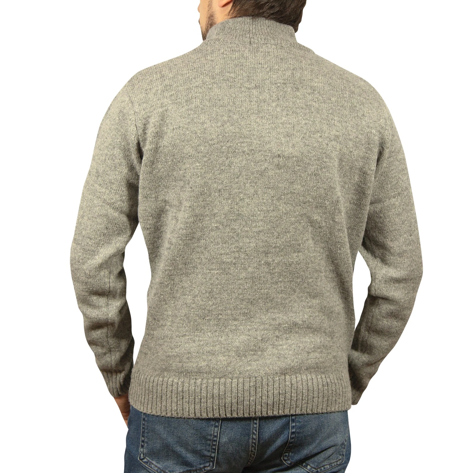 100% SHETLAND RAGG WOOL Half Zip Up Knit JUMPER Pullover Mens Sweater Knitted - Grey - M