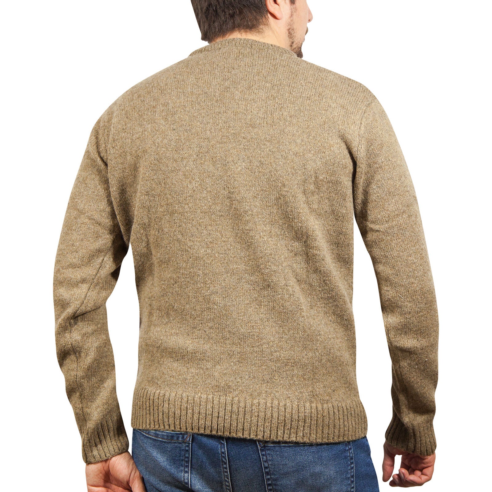 100% SHETLAND WOOL CREW Round Neck Knit JUMPER Pullover Mens Sweater Knitted - Nutmeg - 3XL