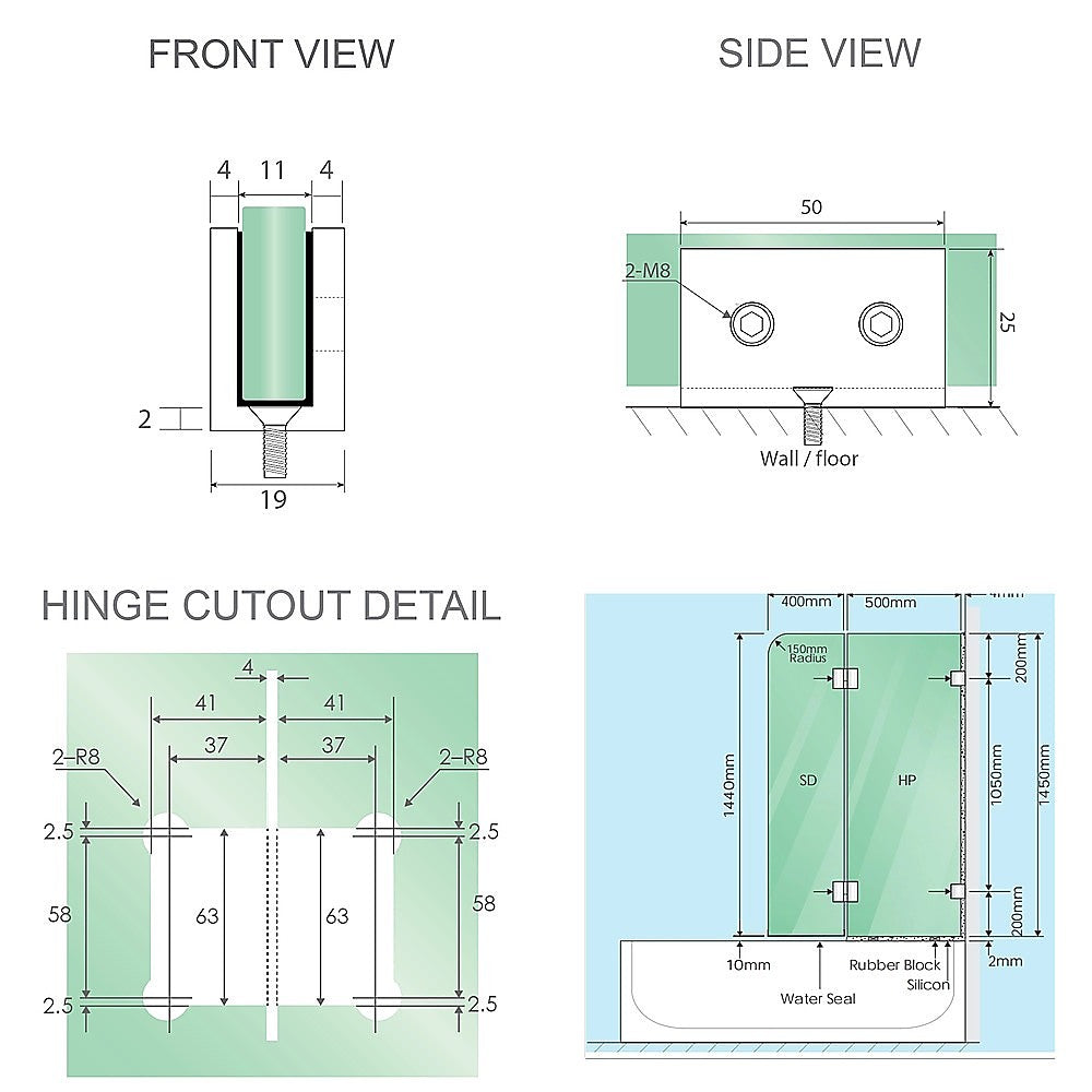 Made from stainless steel, the shower door hinge is designed to support 10mm tempered safety glass. It swings 90 degrees in both directions and self-centers within 25 of the closed position.