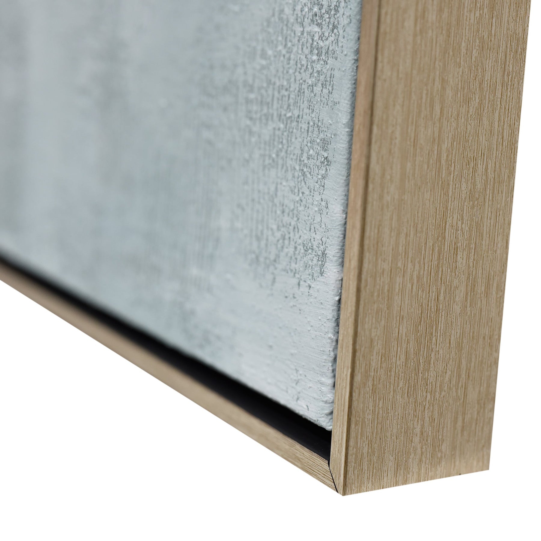 "Whimsical Whorls" is a 100cm x 100cm hand-painted masterpiece that invites viewers into a dreamy world of abstraction. A symphony of curves dance across the canvas, each rendered with meticulous attention to detail, some details include using 3D material. The harmonious blend of white, cream, blues, and sage green creates a soothing visual palette, evoking feelings of serenity and contemplation. The white-washed technique further enhances the ethereal quality of the artwork, giving it a soft, almost ephemeral appearance. Set against a luxurious champagne frame, this piece masterfully combines form, color, and texture to create a captivating visual experience. With its intricate patterns and gentle tones, "Whimsical Whorls" is a celebration of the beauty of abstraction and the power of hand-painting.