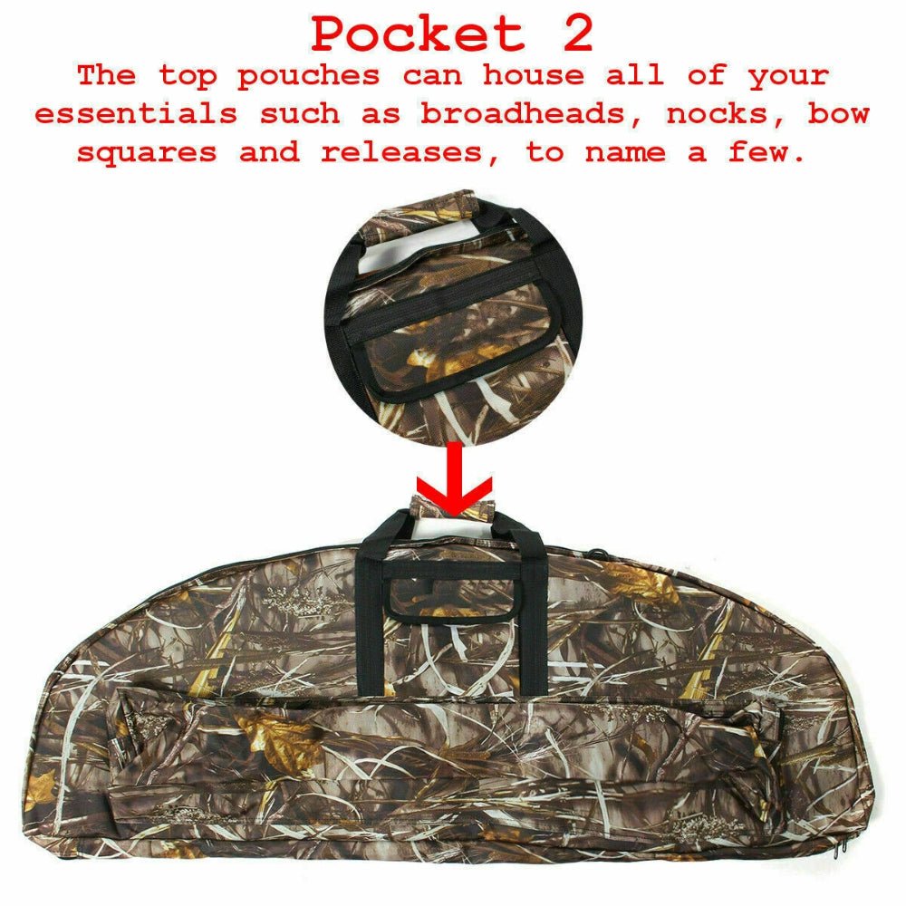 - Multi-functions outdoor hunting set bag: Stores compound bow, arrows, broadheads, box wax, targets, personal items, etc.