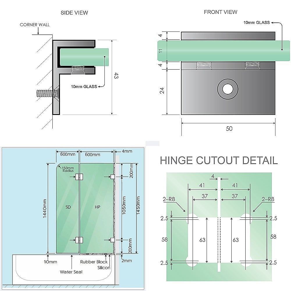 Made from stainless steel, the shower door hinge is designed to support 10mm tempered safety glass. It swings 90 degrees in both directions and self-centers within 25 of the closed position.