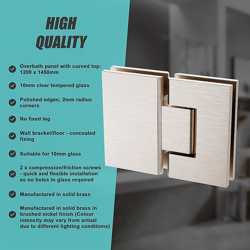 180° Glass-to-Glass Shower Door Hinge in Brushed Nickel x 1