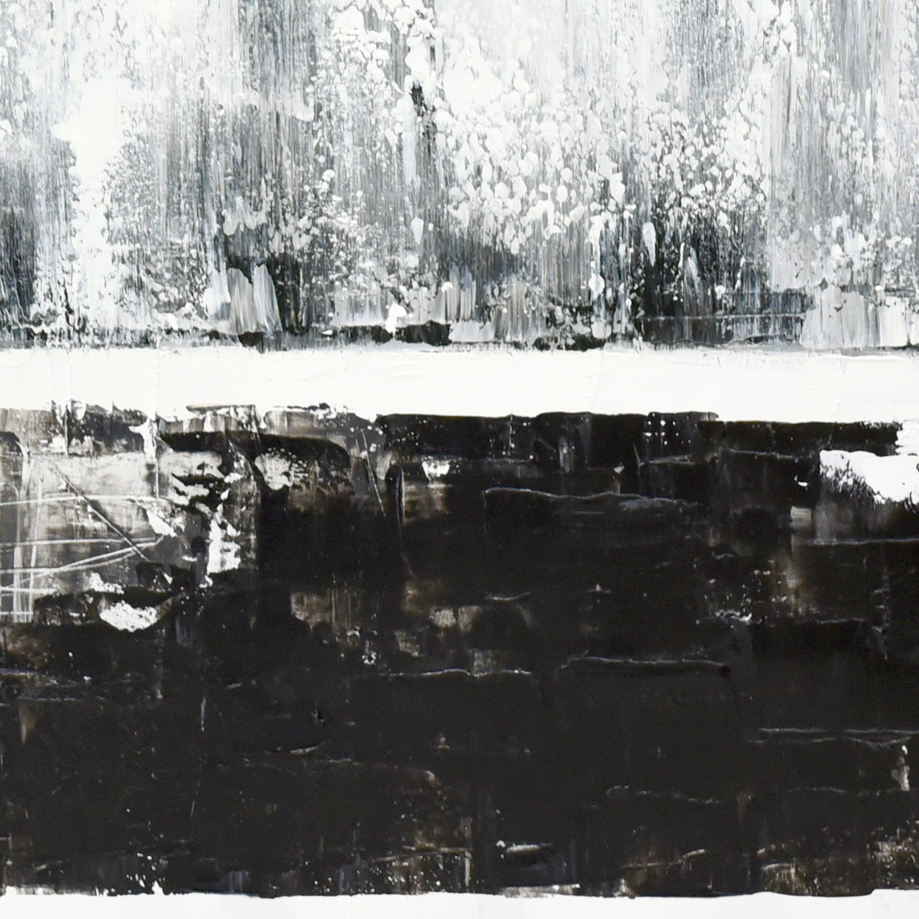 "Tonal Trilogy" is an art piece of striking simplicity and profound depth, measuring 120cm x 120cm. Divided into three distinct horizontal stripes, each segment tells its own story. The top section gleams with a luxurious gold, imbuing the canvas with warmth and opulence. This transitions into the central stripe, a unique blend of white-washed black that marries light and shadow. The composition culminates with a pure black stripe at the bottom, offering a grounding contrast. Each of these sections is immaculately defined by straight-cut white edges, which not only distinguish the stripes but also add a crisp, contemporary touch. Encased in a sleek black frame, "Tonal Trilogy" exemplifies modern abstract art, balancing bold contrasts with harmonious continuity.