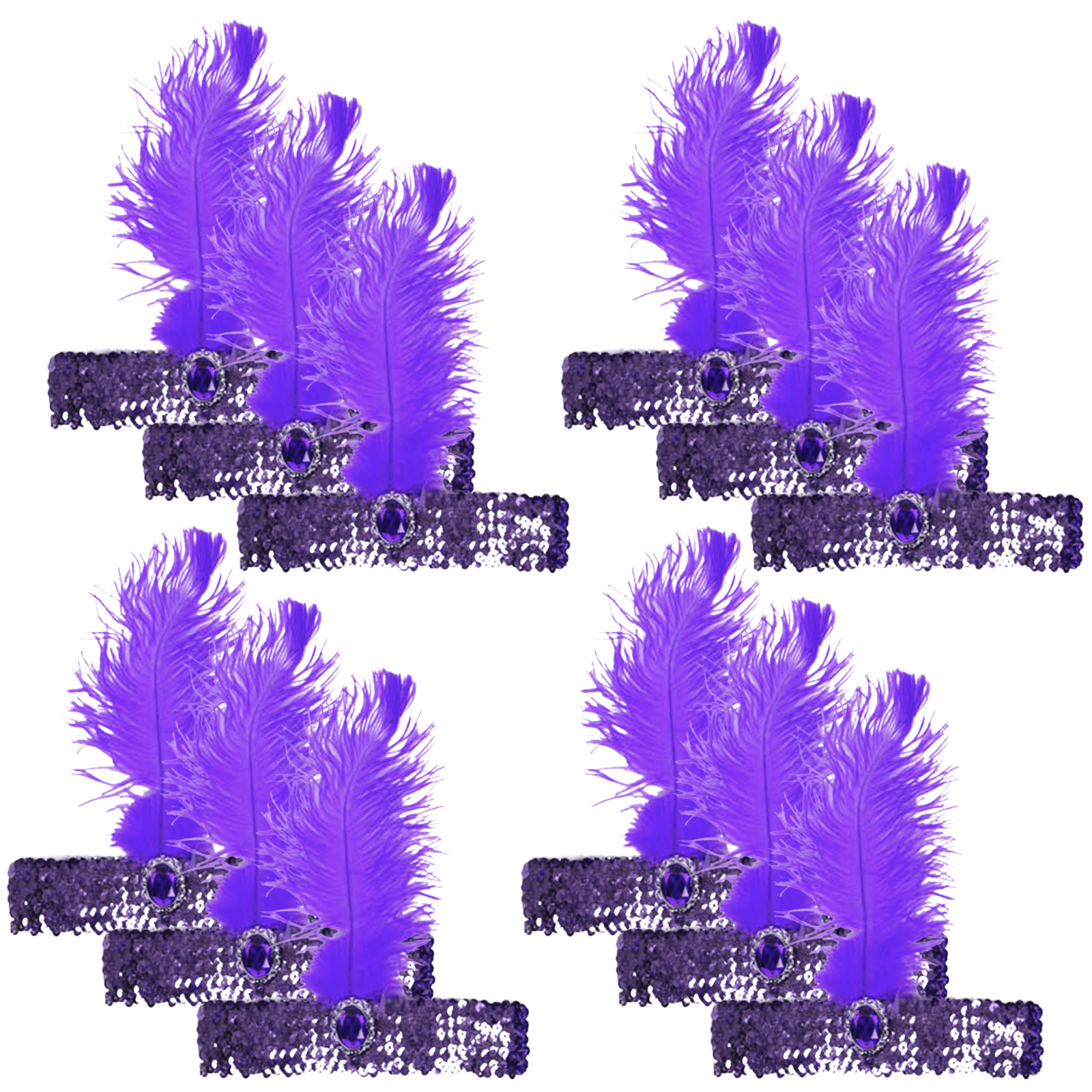 12x 1920s FLAPPER HEADBAND Headpiece Feather Sequin Charleston Gatsby Party BULK - Purple