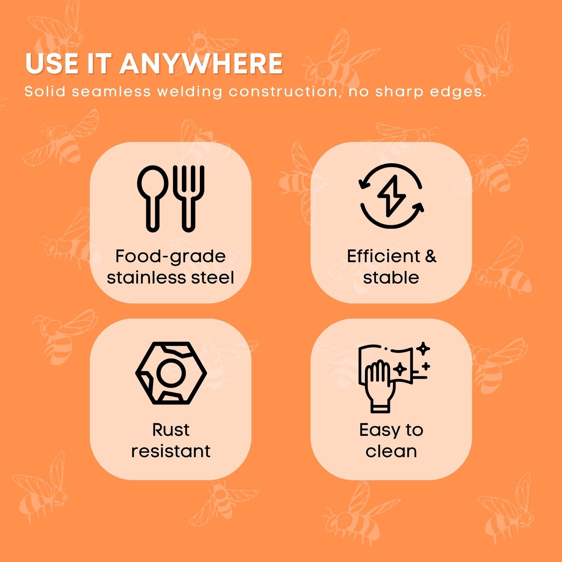 - Solid seamless welding construction, no sharp edges