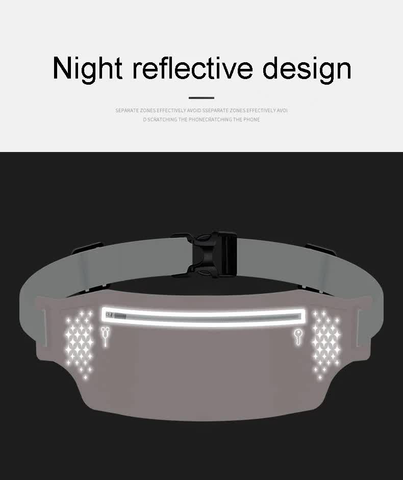 This women's fitness waist bag combines functionality and style, offering a secure and comfortable way to carry your essentials during any activity. Its slim profile ensures it stays in place without bouncing, while the reflective accents enhance visibility during early morning or evening runs. Whether you're training for a marathon or enjoying a casual jog, this waist bag is designed to keep up with your active lifestyle.