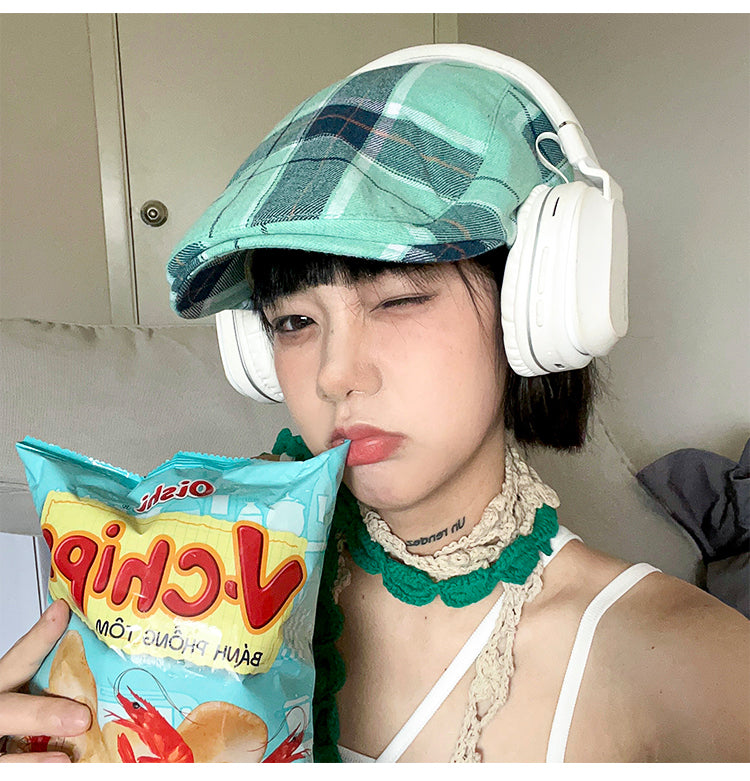 Retro Plaid Flat Cap - Lightweight & Adjustable Ivy Style Hat