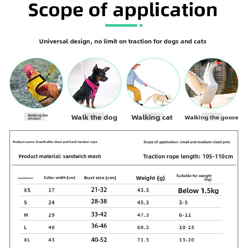 • Universal Fit: Suitable for small dogs, cats, chickens, ducks, geese, and similar-sized pets