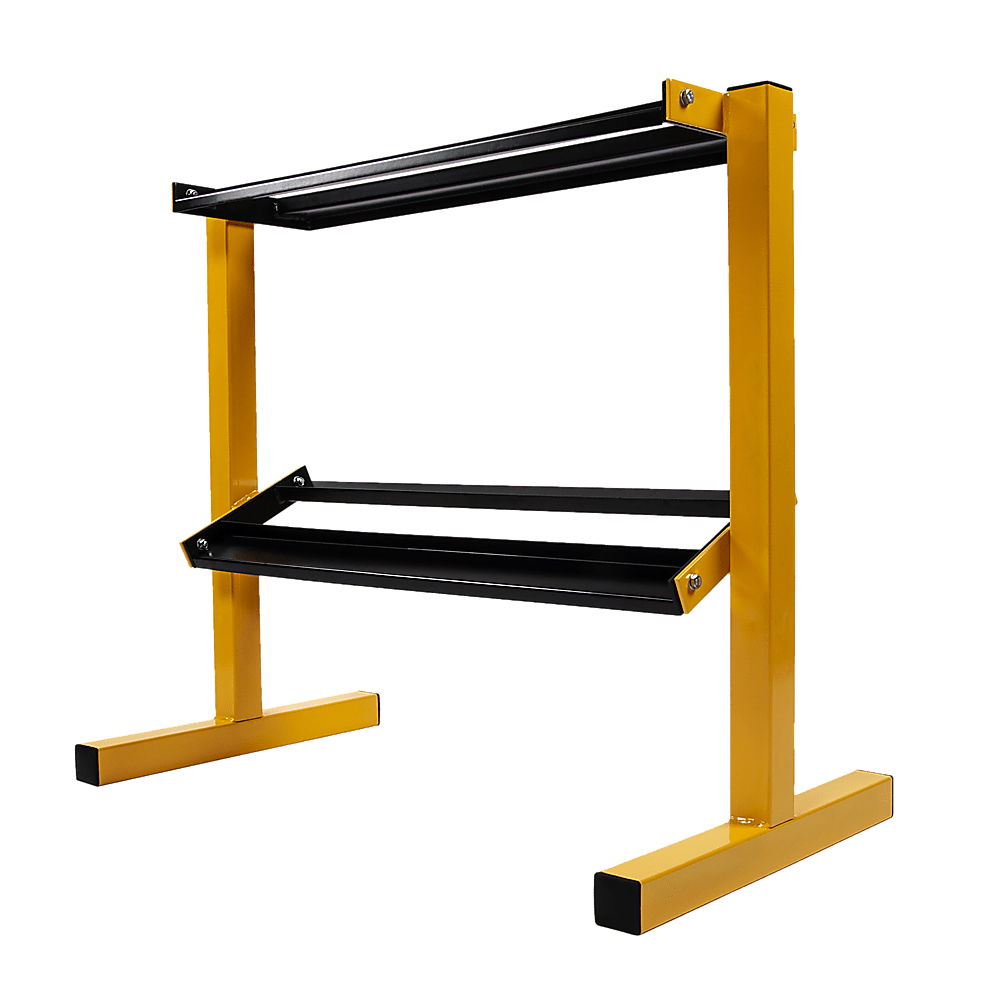Its 50mm upturn makes it the perfect storage solution for weights 10kg and up. With its sturdy steel frame, it can support up to 400 pounds, so long as the weights are distributed evenly. To protect your floor from dents from all that weight, the rack features rubber feet to protect your floor and prevent slippage. Don't miss out on your chance to organise your workout room with this convenient weight storage rack. Get yours today!