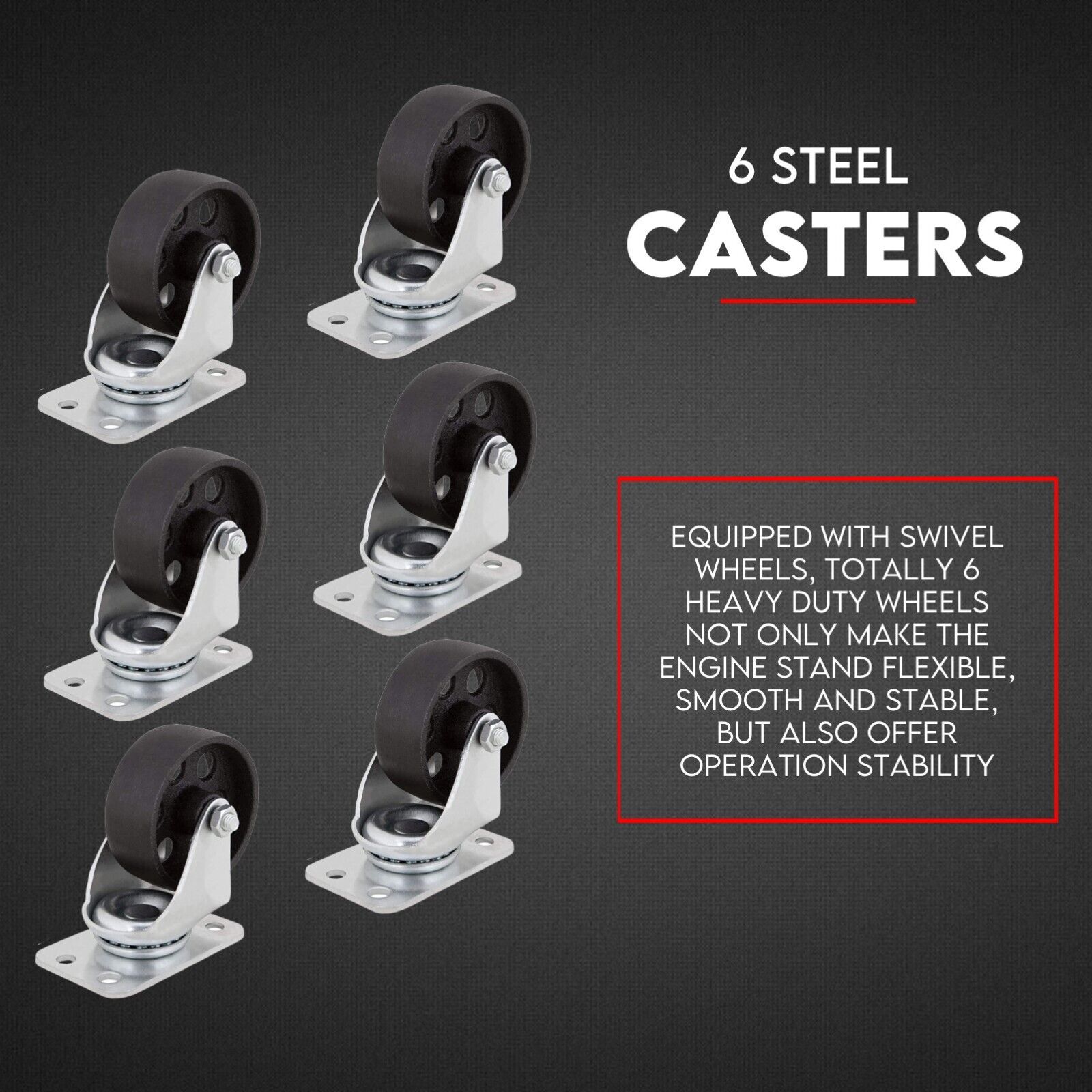 6 - Heavy Duty Cast Iron 360° Swivel Wheels