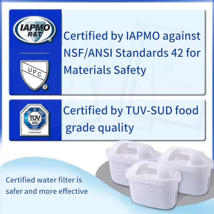 All the material is food grade plastic, the cartridge can filter out the Chlorine, impurities and particular smell in the water. It reduces the water hardness with improving the taste of water for better health.