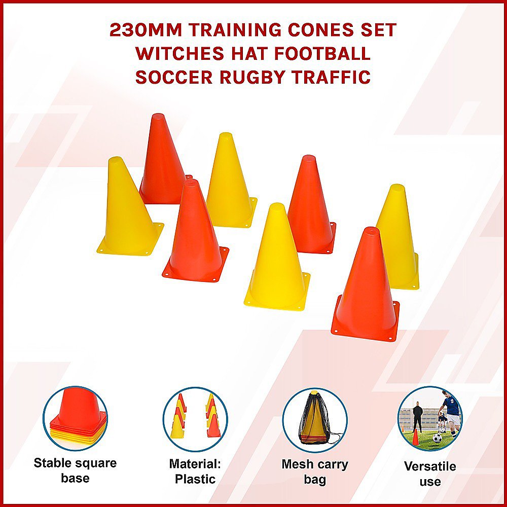 Training for rugby or football is a breeze with these 230-millimetre training cones from Randy Travis Machinery. This eight-cone set allows you to run patterns, practice footwork, or weave in and out of the cones to hone your agility.