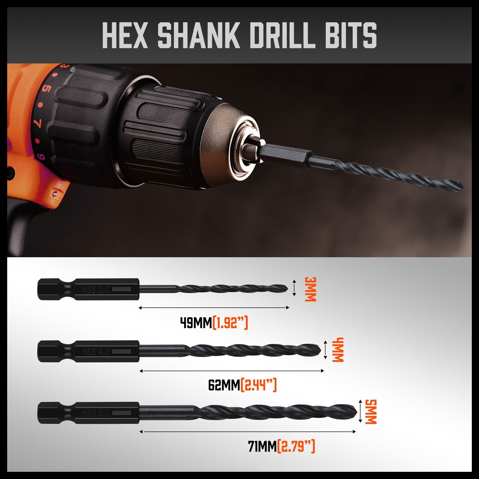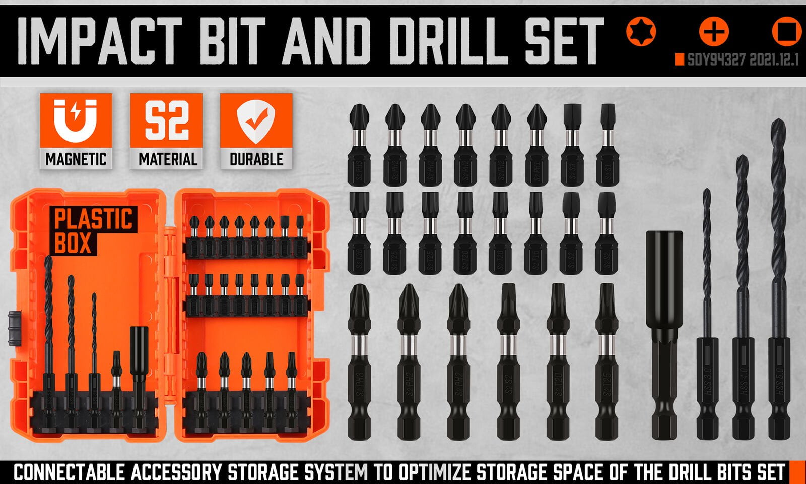 【Complete 22+3+1 Tool Set】22 impact screwdriver bits, 3 drill bits, 1 magnetic bit holder. Complete combination for most driving and fastening jobs.