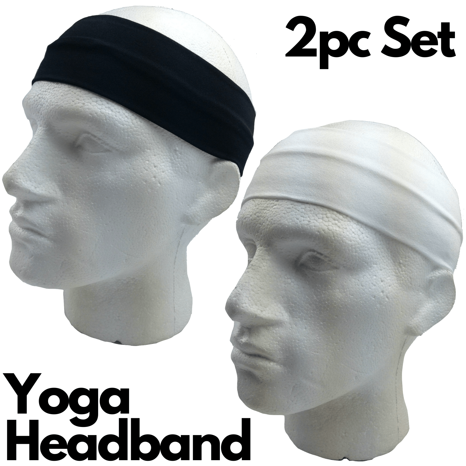 2pc Set Plain Headband Elastic Stretch Sports Yoga Hair Band Unisex Wide Wrap