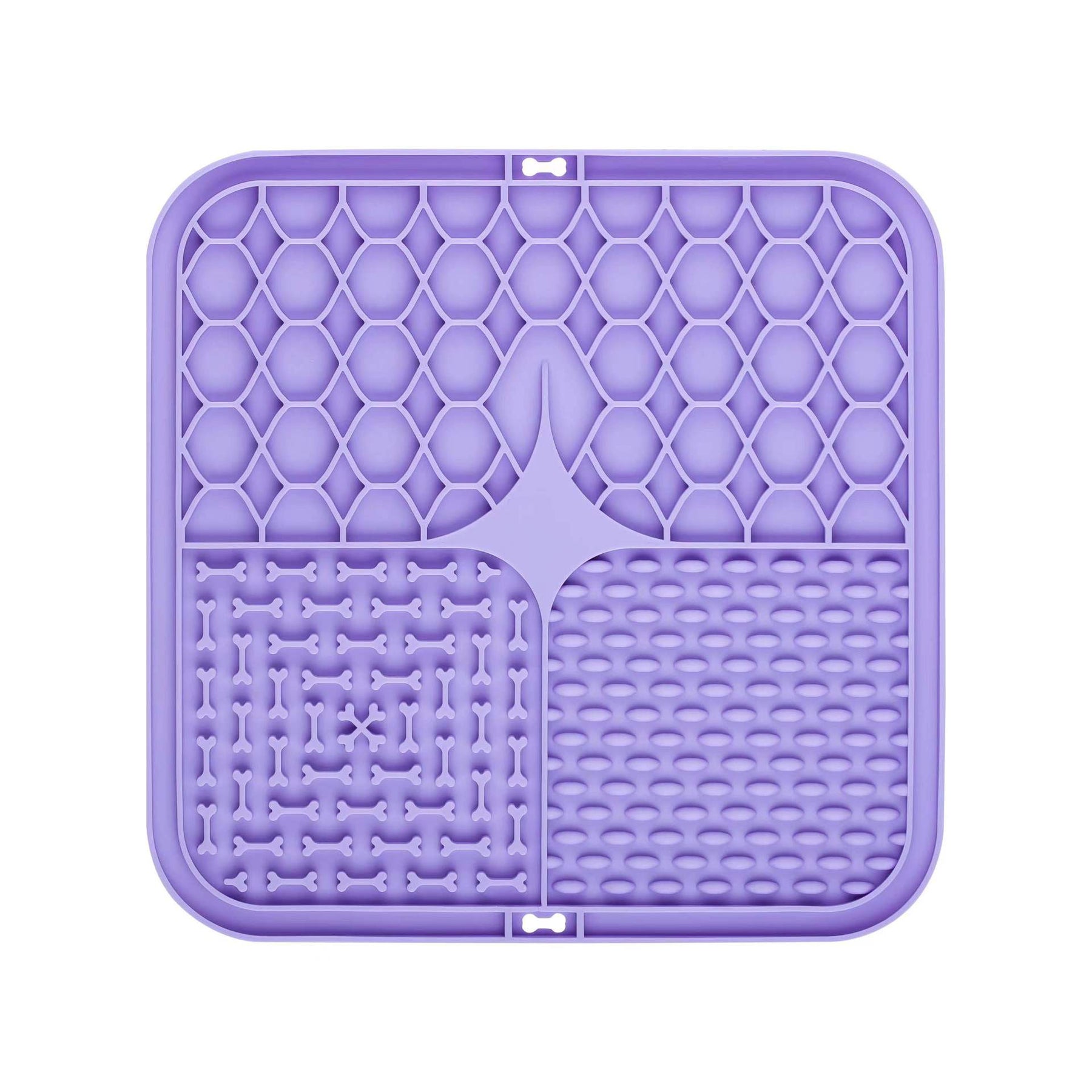 2PCS Purple 20 x 20 cm Silicone Pet Lick Mat | Multi-Zone Slow Feeder Pad with Suction Cups | Anxiety Relief Dog & Cat Bowl