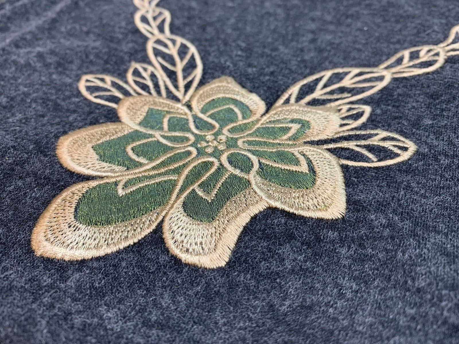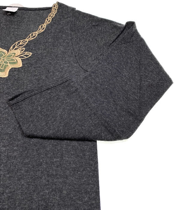 Beautiful, classic 2pcs merino wool blend thermal long jane thermal pants & long sleeve floral embroidered v-neck spencer top set to keep you warm during the colder months.