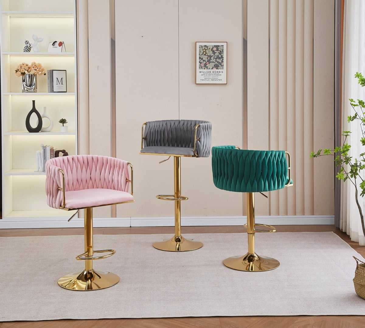 Designed to blend in with any environment, this bar stool serves the purpose of providing seating comfort along with a neat, simple design. Featuring an elegant woven seat structure and beautiful gold plated gas lift lever, it will surely complement your modern décor. It also incorporates a quality golden plated base with a velvet padded seat providing long lasting furniture that offers maximum comfort. Contemporary and innovative, it's a beauty with assured quality.