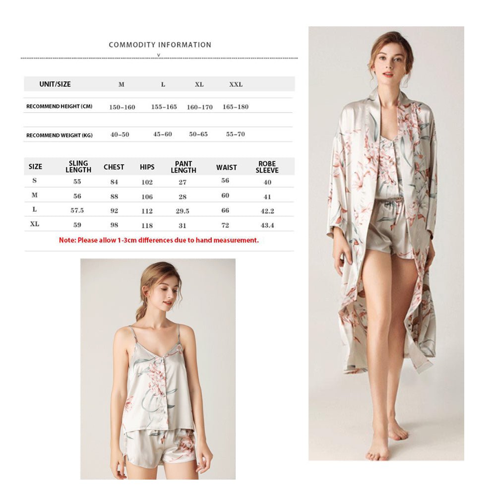 3 Pcs Set Woman Elegant Nightdress Silk Satin Summer Sleepwear Pajamas (L Size)