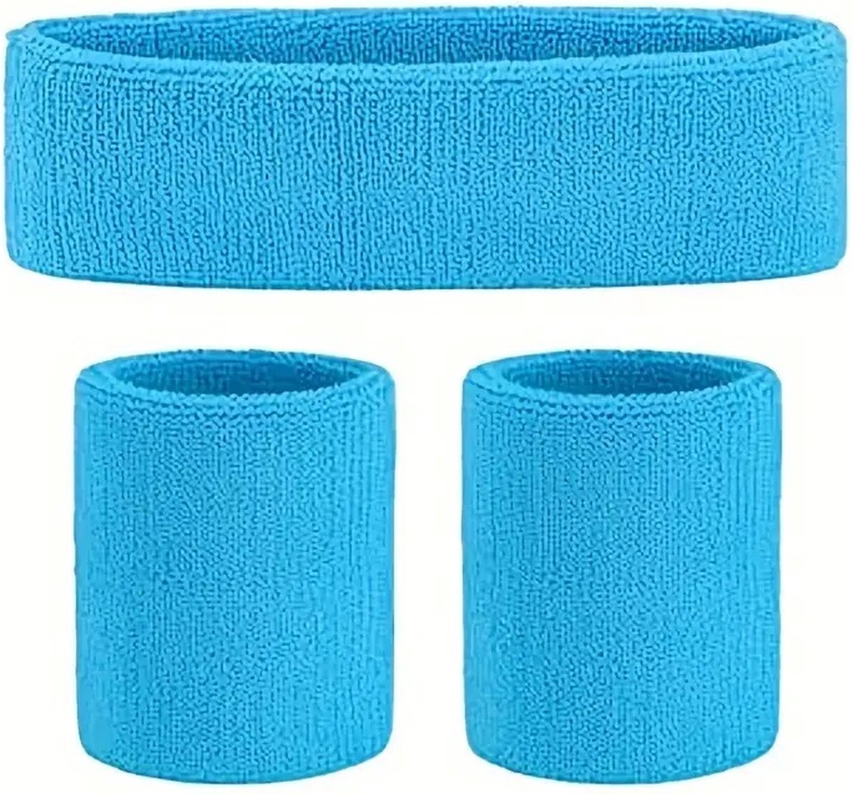 3-Piece Set of Headband & 2x Wristband Set | Sweatband | Sweatbands | Head and Wrist | Sports Bands | Light Blue