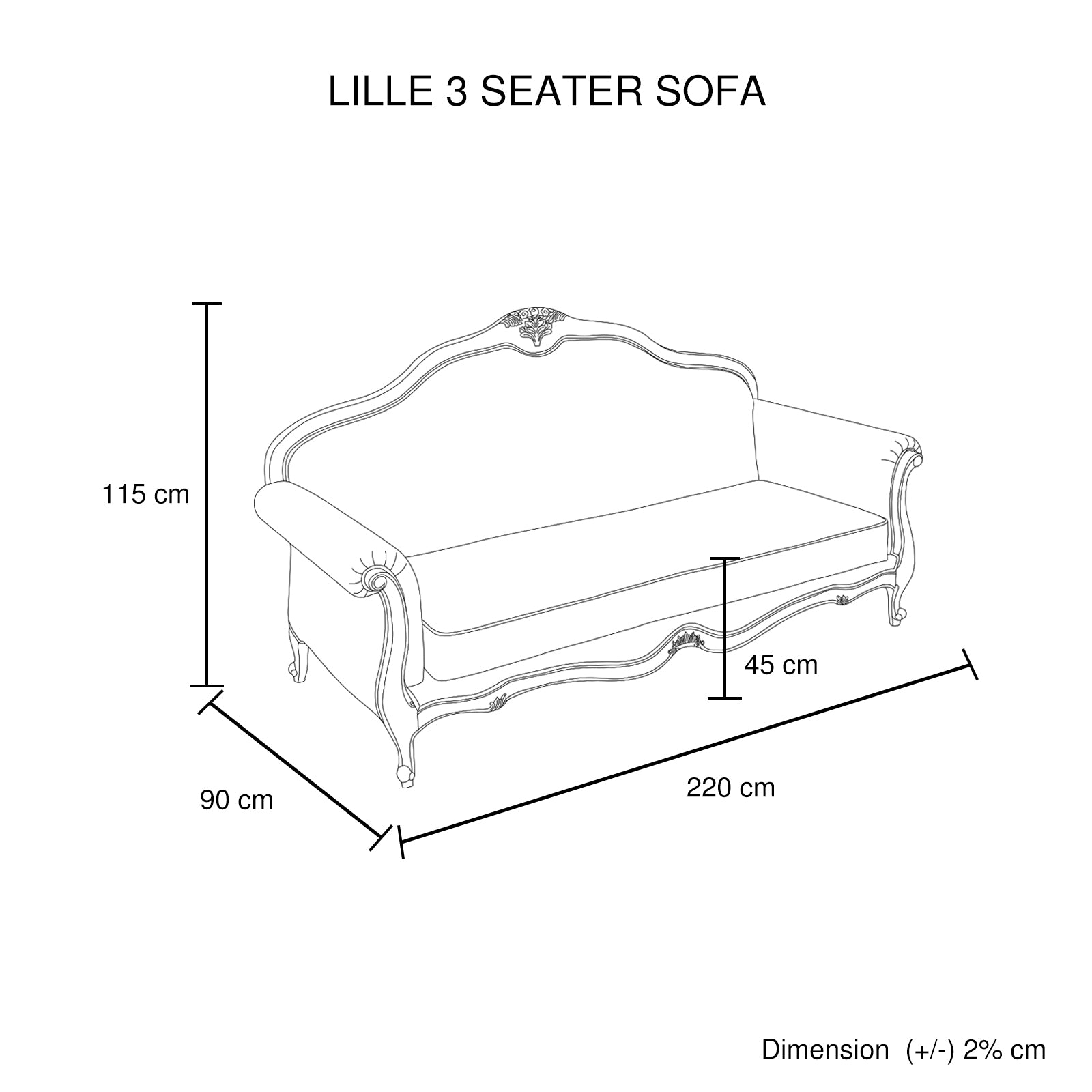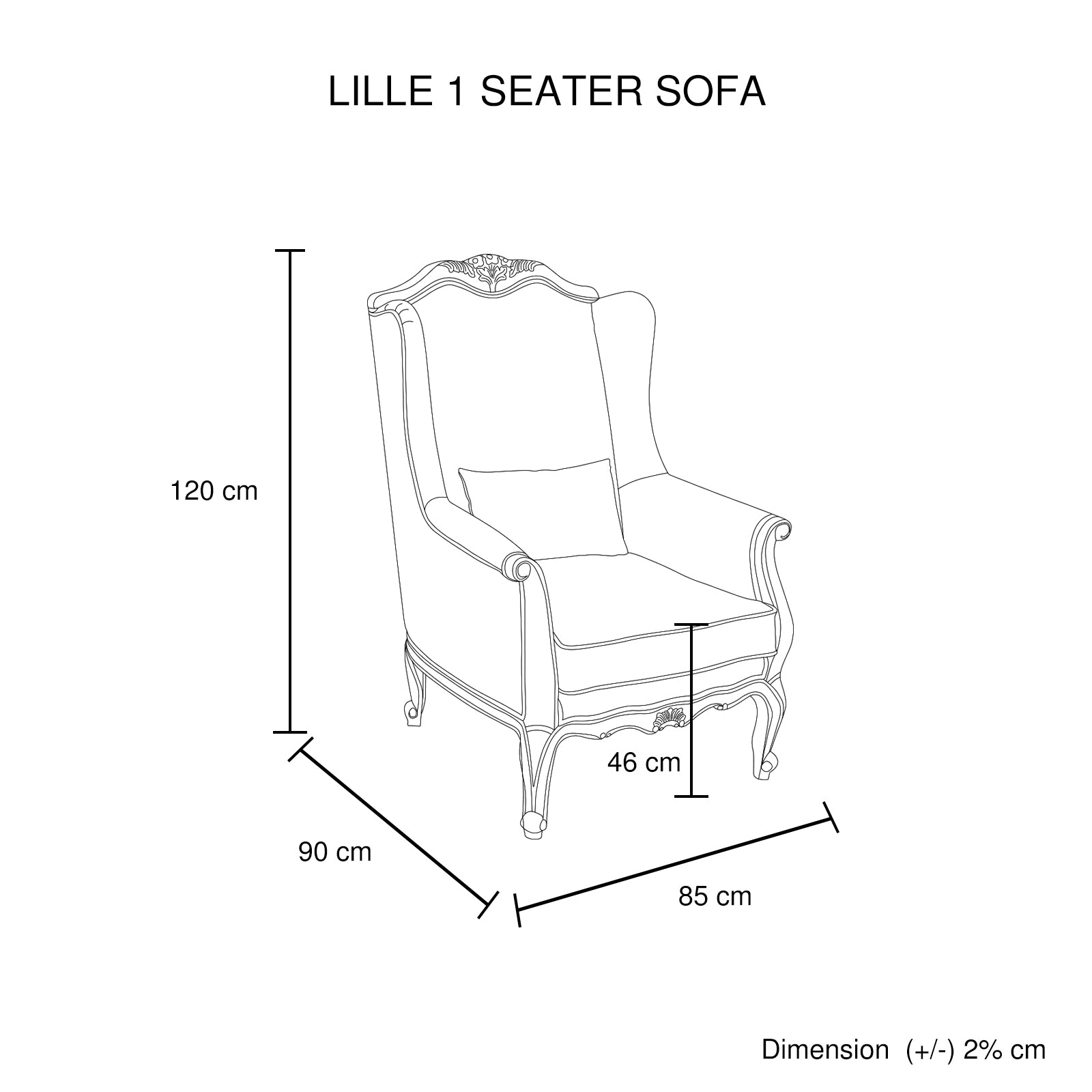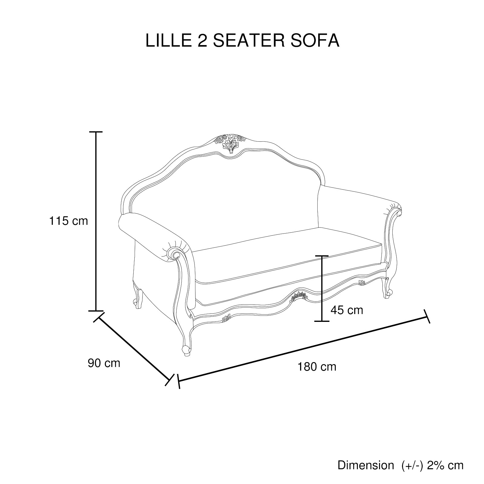 Our Lille sofa proudly boasts royal Chester Ford design and premium upholstered cover. Its medium high backrest has Oak wood frame and there is floral embellishment on top of the backrest. This Lille range has set of two and three seater sofas with one wing chair
