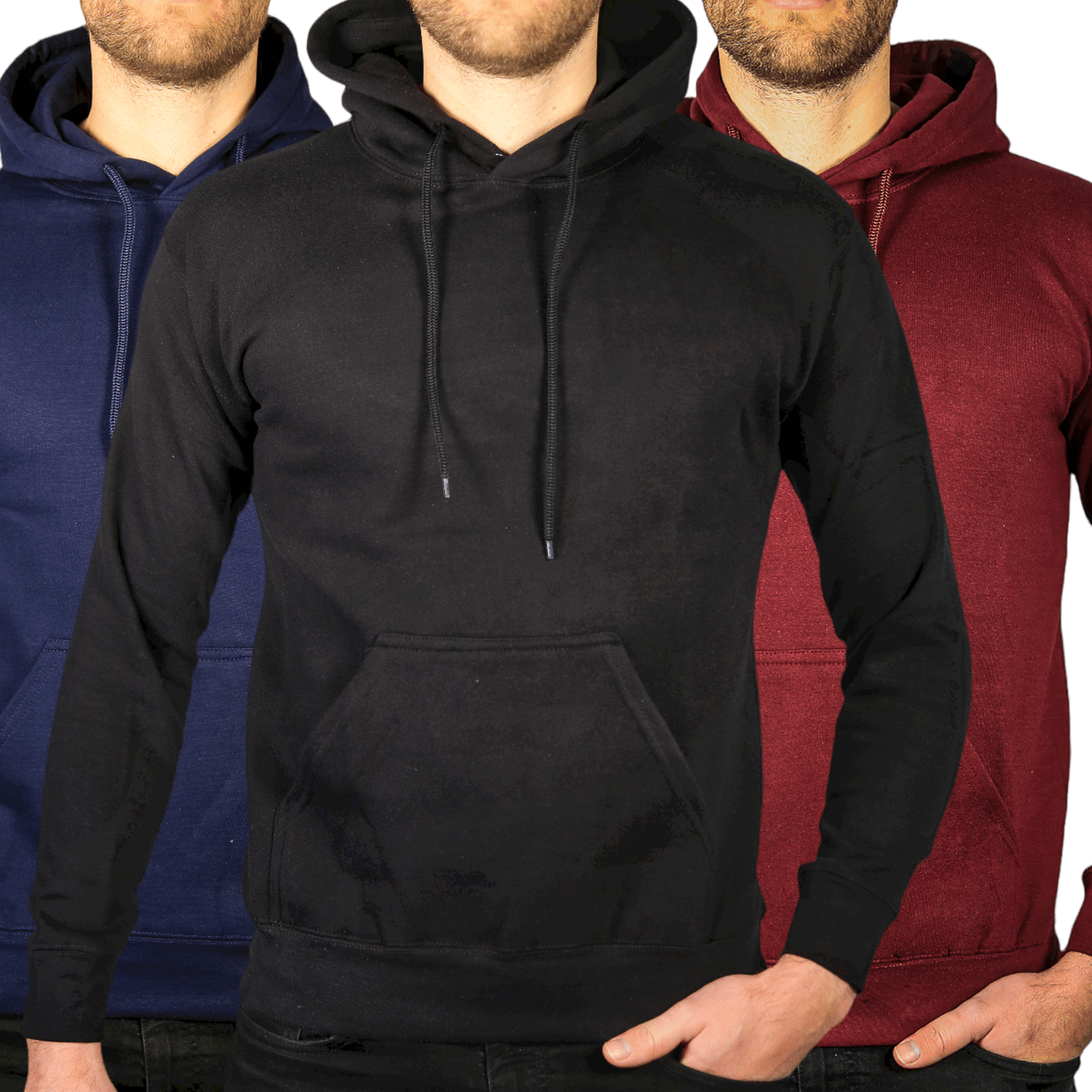 3x Adult Mens 100% Cotton Fleece Hoodie Jumper Pullover Sweater Warm Sweatshirt - M
