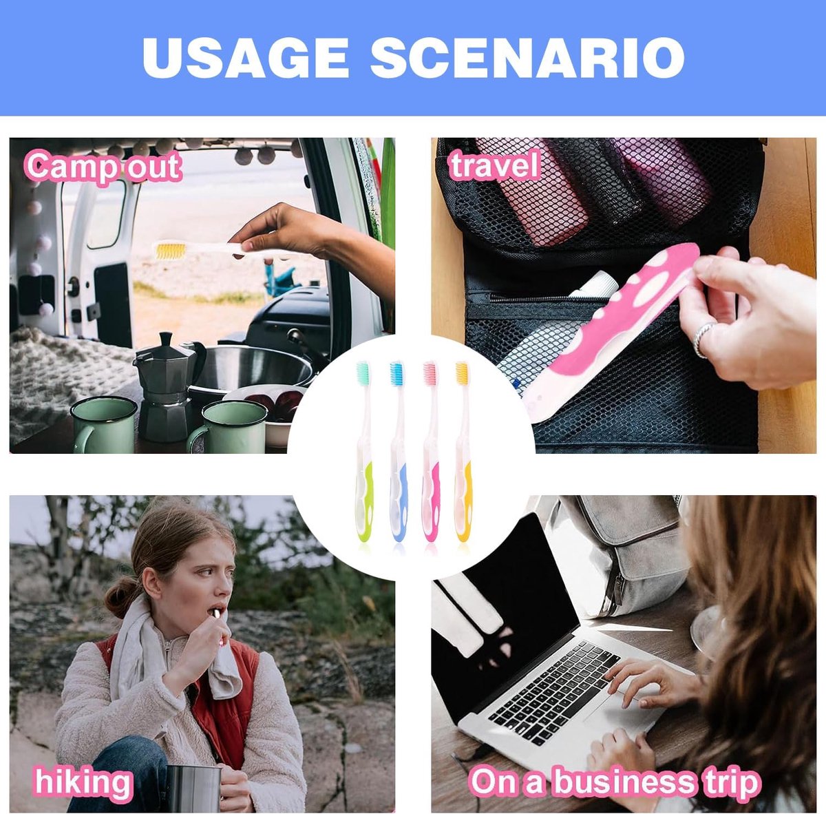 Foldable Design: Thanks to the foldable design, the bristles can be easily stored in the handle, keeping dirt out. These lightweight, reusable toothbrushes are easy to hold and carry, saving space in your toiletry bag and perfect for travel, camping, hiking, or other outdoor activities. Versatile Uses: Camping toothbrushes are durable, comfortable, and hygienic. They're ideal for vacations, short trips, camping trips, or staycations. They're ideal for travel and also make a great gift for kids, teens, and adults. Show more