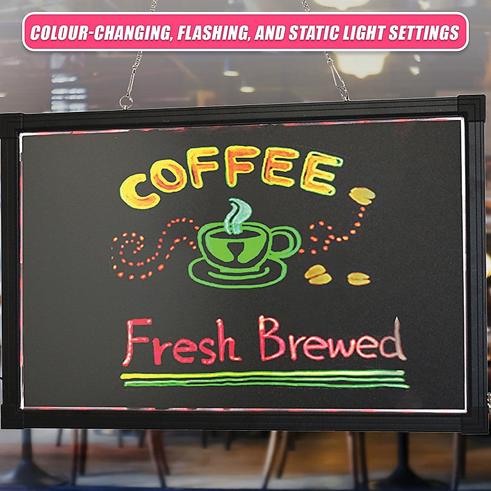 Your child will have so much fun with this LED writing and drawing board that she won't even realise that she's learning! This light-up board by Randy Travis Machinery provides your child with hours of play. The first time your child sees his drawings and pictures light up, he'll think it's sheer magic. With several modes of lighting colour-changing, static, or flashing this board has possibilities well beyond a child's toy. Restaurants can use it to attract attention to their special of the day, retailers can set it up in their shop windows to announce a flash sale, and adults can use it as a relaxing, creative way to relieve stress at the end of a tough day. Executives, teachers, and salespersons can even use it as a colourful visual aid when they give presentations.