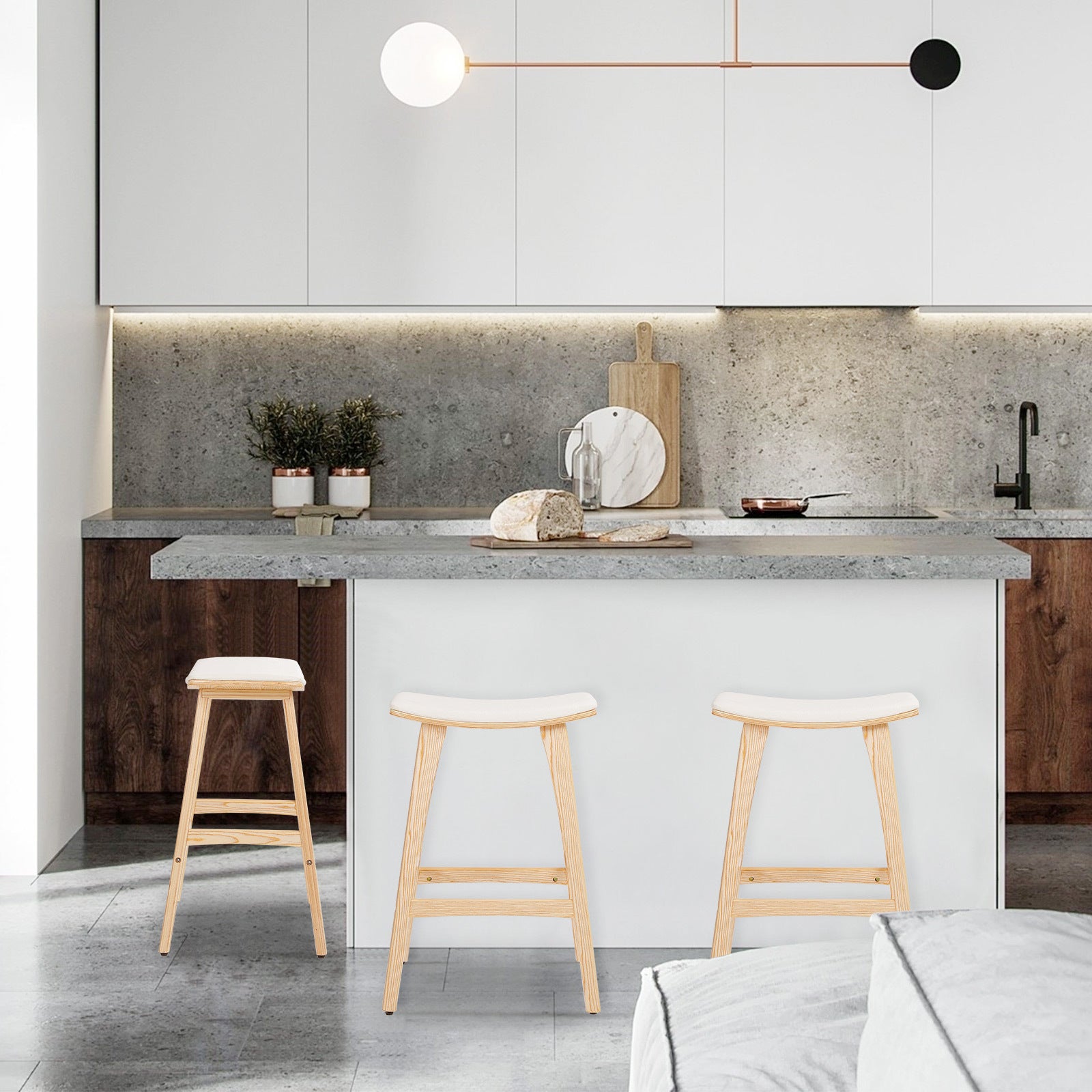 La Bella 4 Set Wooden Bar Stool 65cm KANSO Kitchen Barstools Padded Fabric Dining Chair - Beige