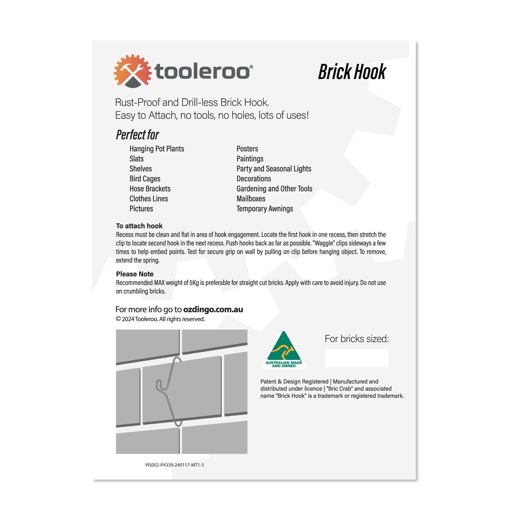 - Fits Standard Australian Bricks: 70mm