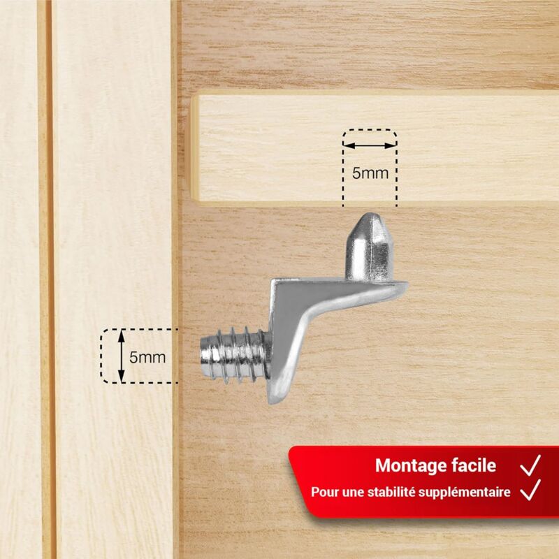 - Scope of delivery: 50 nickel-plated 5 mm shelf supports for shelves with 5 mm holes