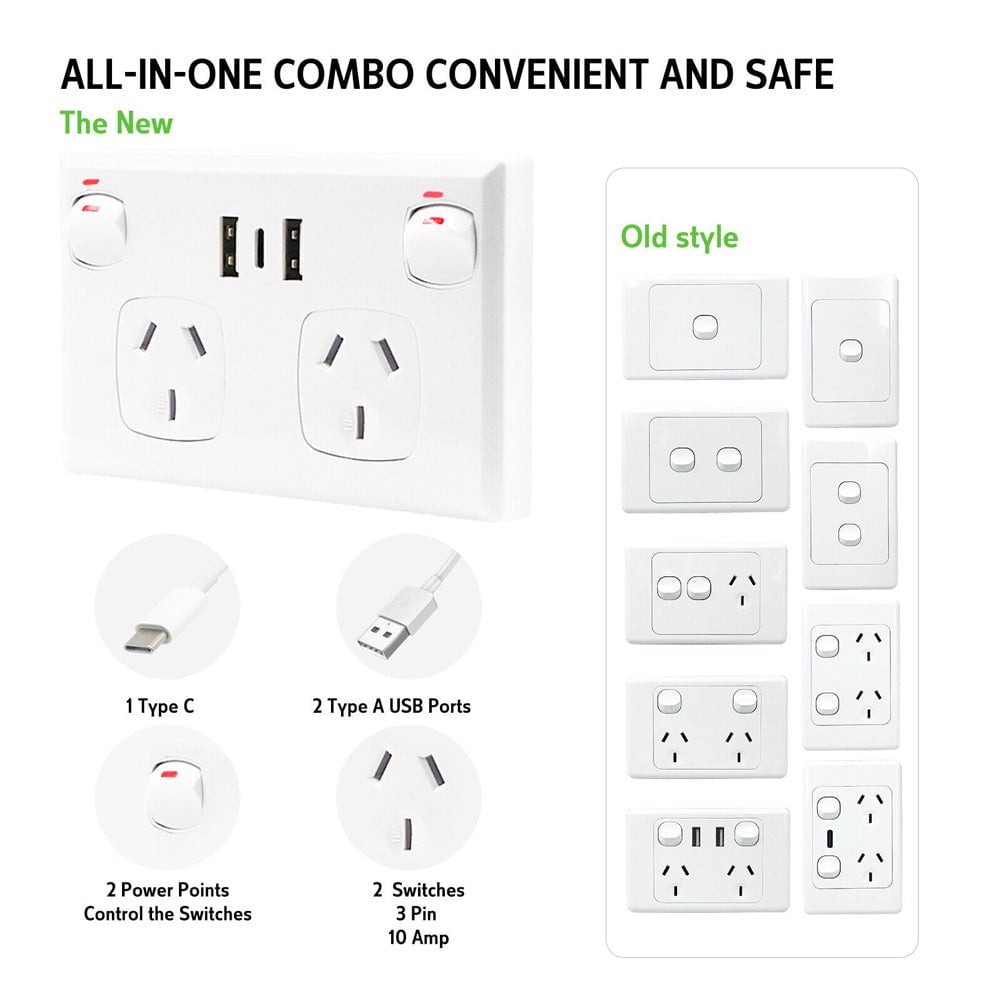 - Power Point with 5V 3600mA Double USB + Type C charger