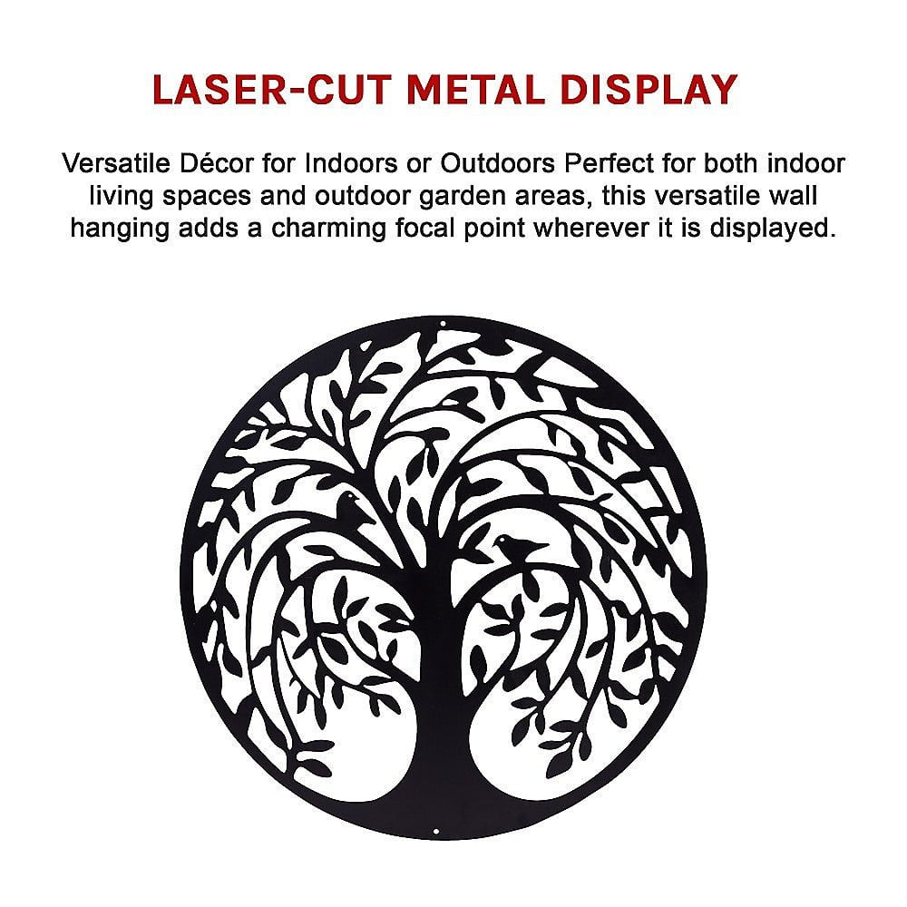 Bring a touch of elegance to your home or garden with this beautiful Tree of Life Birds Round Metal Wall Art Sculpture. Crafted from high-quality iron, this 60cm diameter laser-cut metal piece features a stunning Tree of Life design with intricate details, giving your space a vintage and weathered look that exudes character.