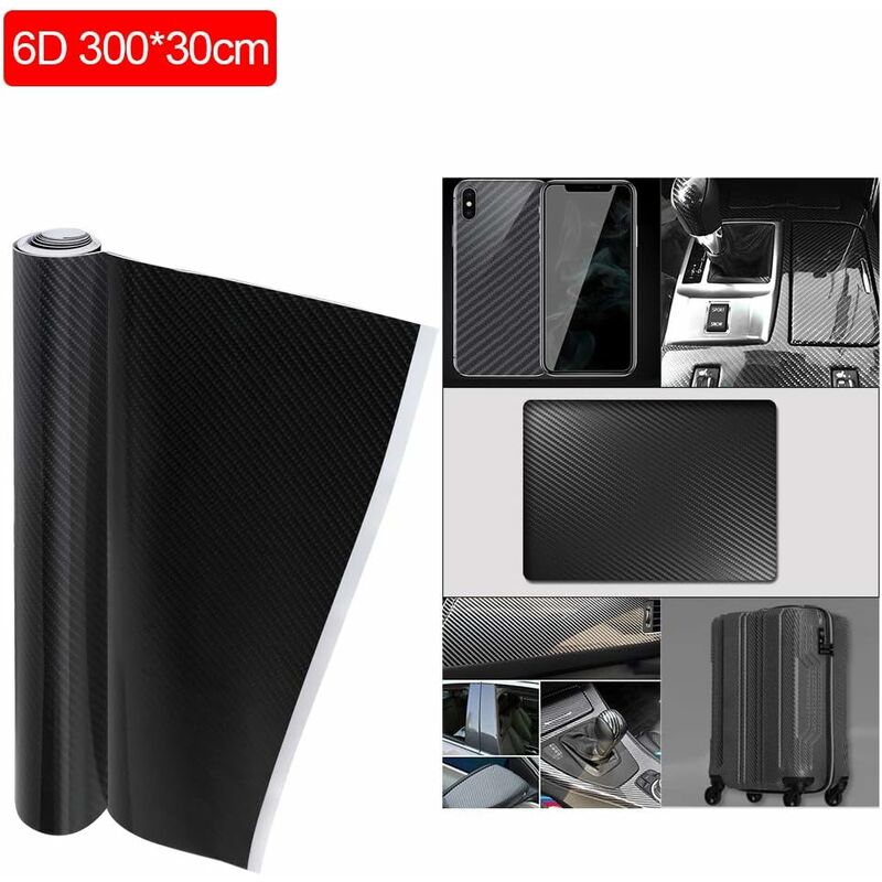 - It molds to complex curves, fits your car perfectly and lasts for more than 5 years CARBON ADHESIVE: This 6D carbon wrap vinyl has built-in air-release technology for a clean, crisp, bubble-free look, and can stretch freely when heated with a hair dryer and will not shrink when brought back to room temperature APPLICATIONS: It measures 10ft x 1ft (300cm x 30cm)