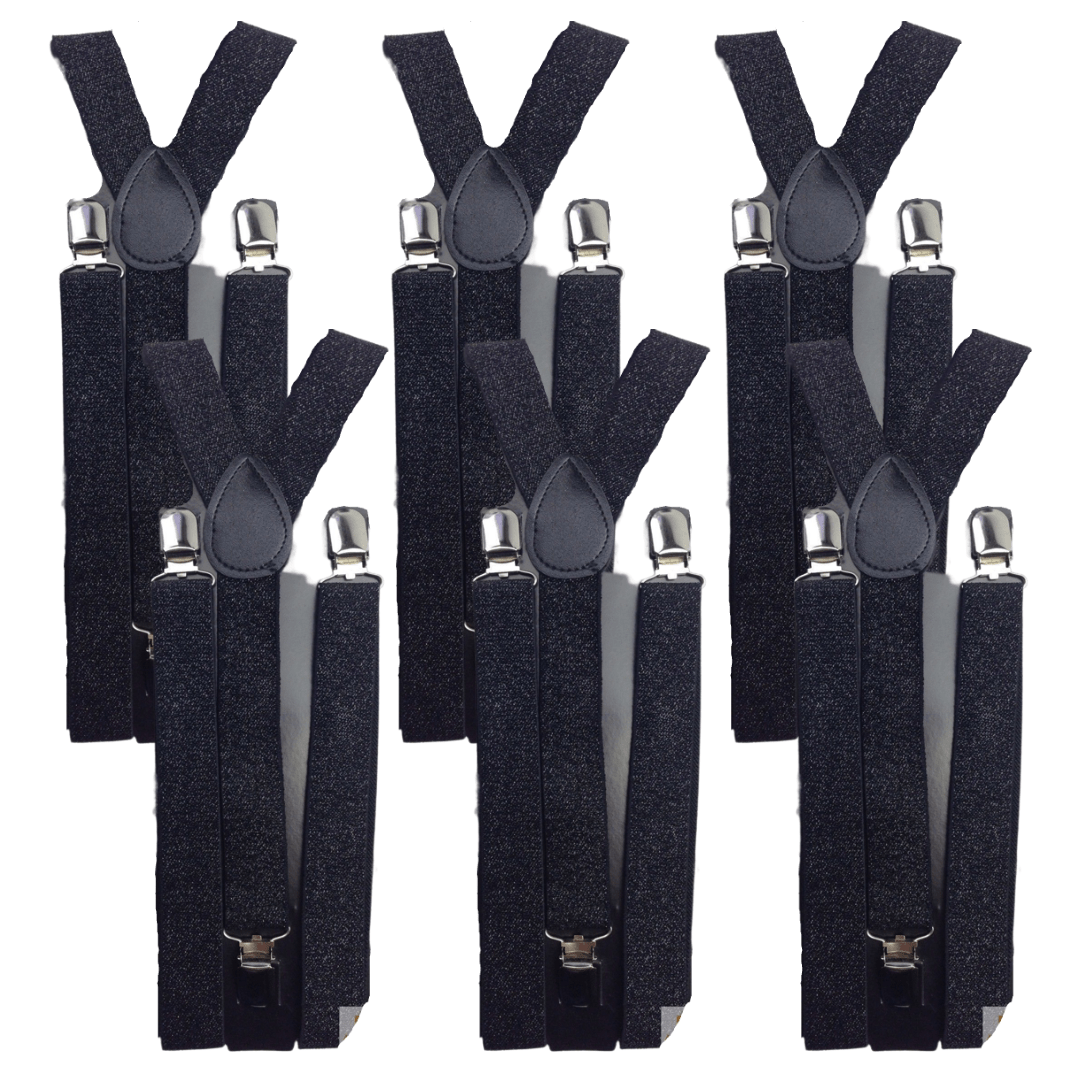 6x Mens Suspenders Braces Adjustable Strong Clip On Elastic Formal Wedding BULK - Black (Glitter)