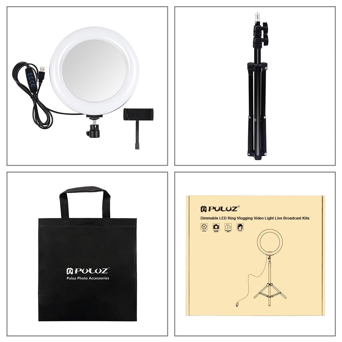 • 1 x 7.9 Inch 20Cm Mirror Light 1.1M Tripod Mount Usb 3 Modes Dimmable Dual Colour Temperature Led Curved Light Ring Vlogging Selfie Photography Video Lights With Mirror Phone Clamp Black
