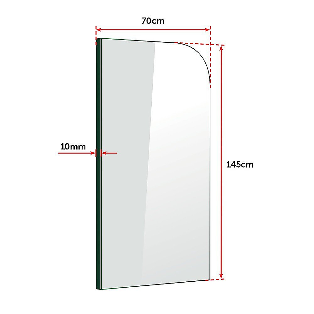 This gleaming shower door measures a generous 700 x 1450mm and features 10mm Australian standard tempered glass. The rounded-top panel is not only attractive, it is safe to use for all members of the family. The sturdy hardware on this shower door ensures safety and dependability. The elegant patch hardware add to the panel"s aesthetic appeal.