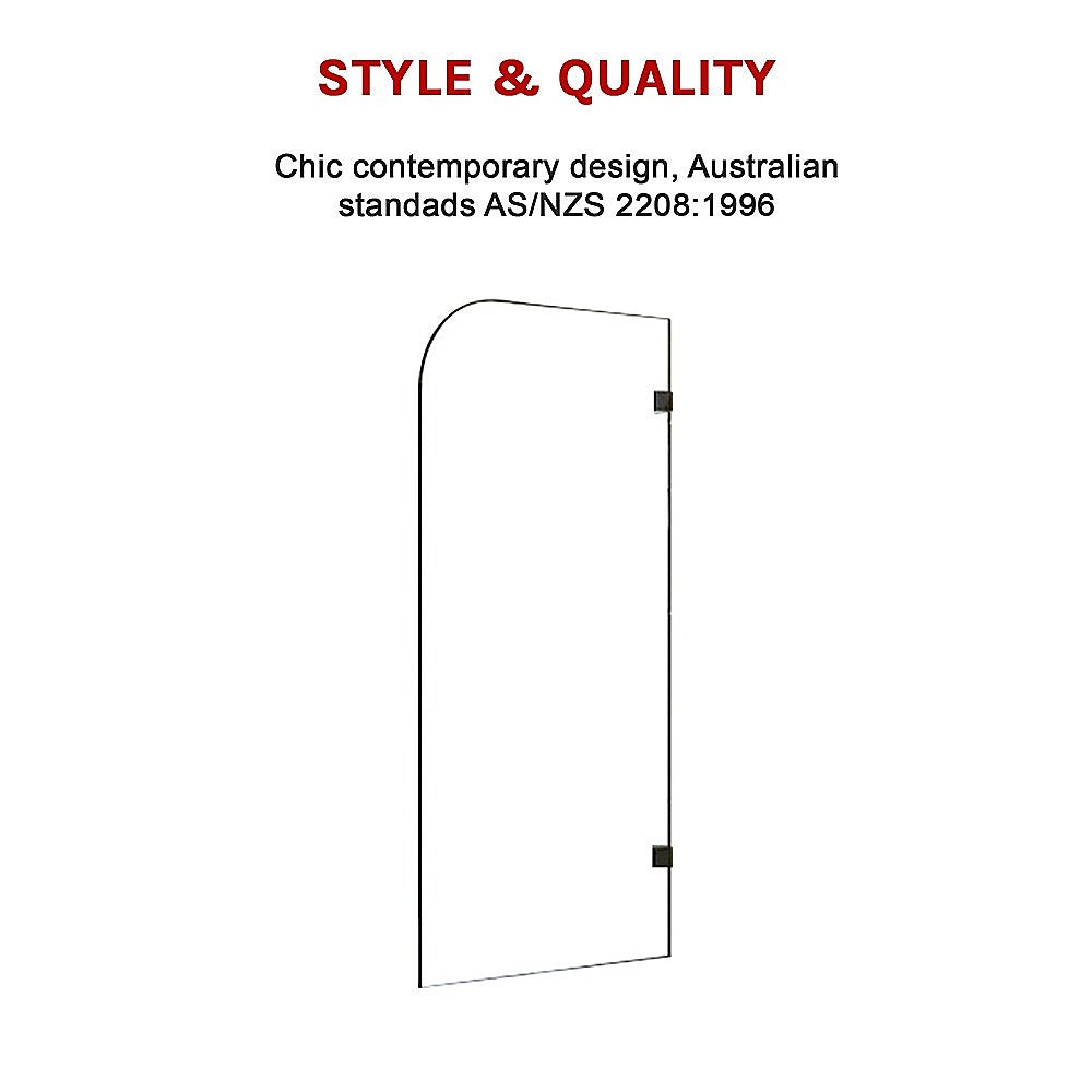 This gleaming shower door measures a generous 700 x 1450mm and features 10mm Australian standard tempered glass. The rounded-top panel is not only attractive, it is safe to use for all members of the family.The sturdy hardware on this shower door ensures safety and dependability. The elegant patch hardware add to the panels aesthetic appeal.