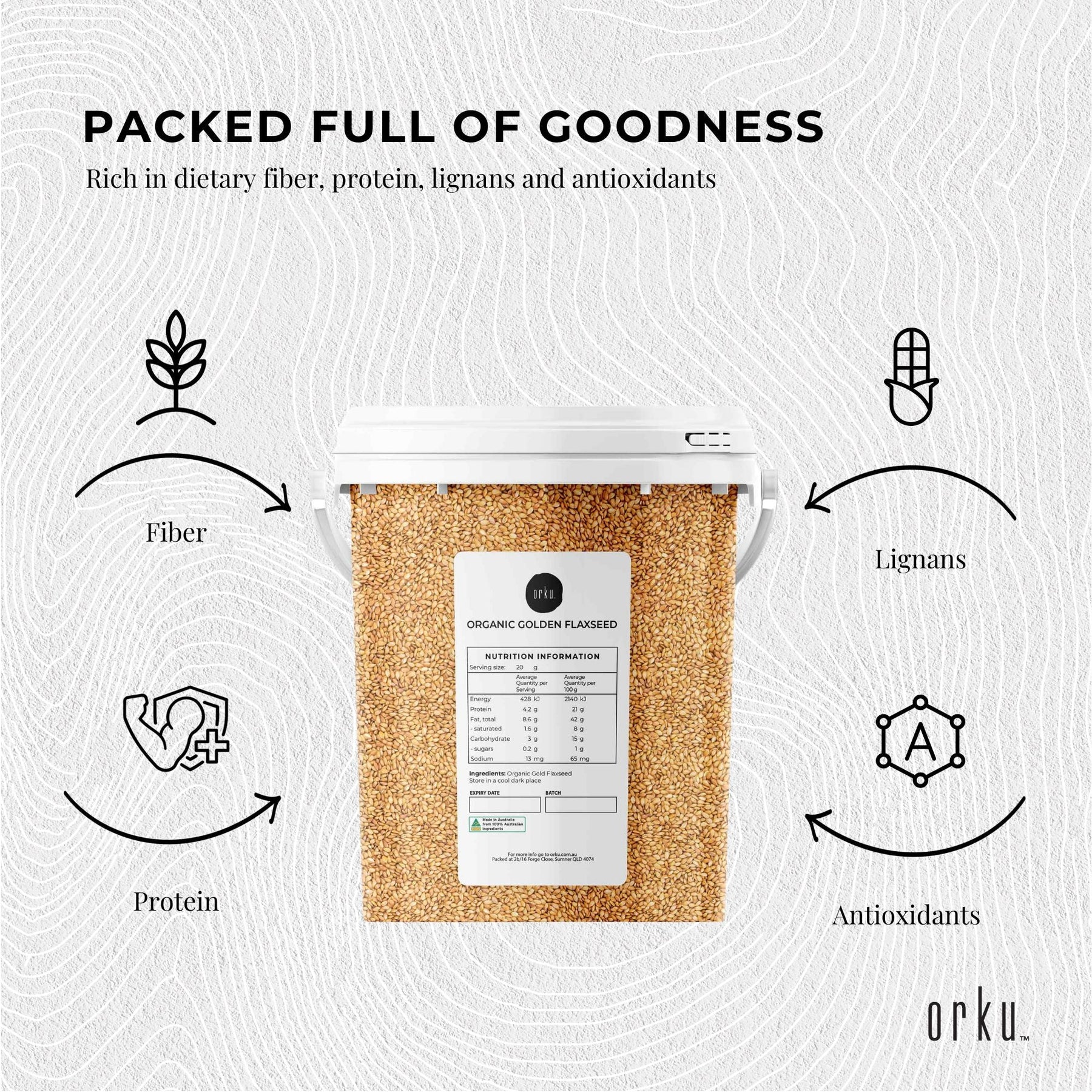 Orku Golden Linseed, are harvested in Australia, are organic and non GMO.