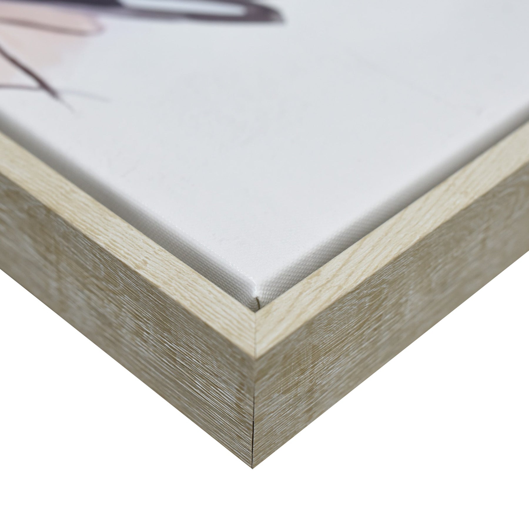 Stretched and gallery wrapped around a wooden stretcher and finished with a floating frame. There is a gap between the frame and print, which creates the floating effect and literally makes the canvas print stand out even more.