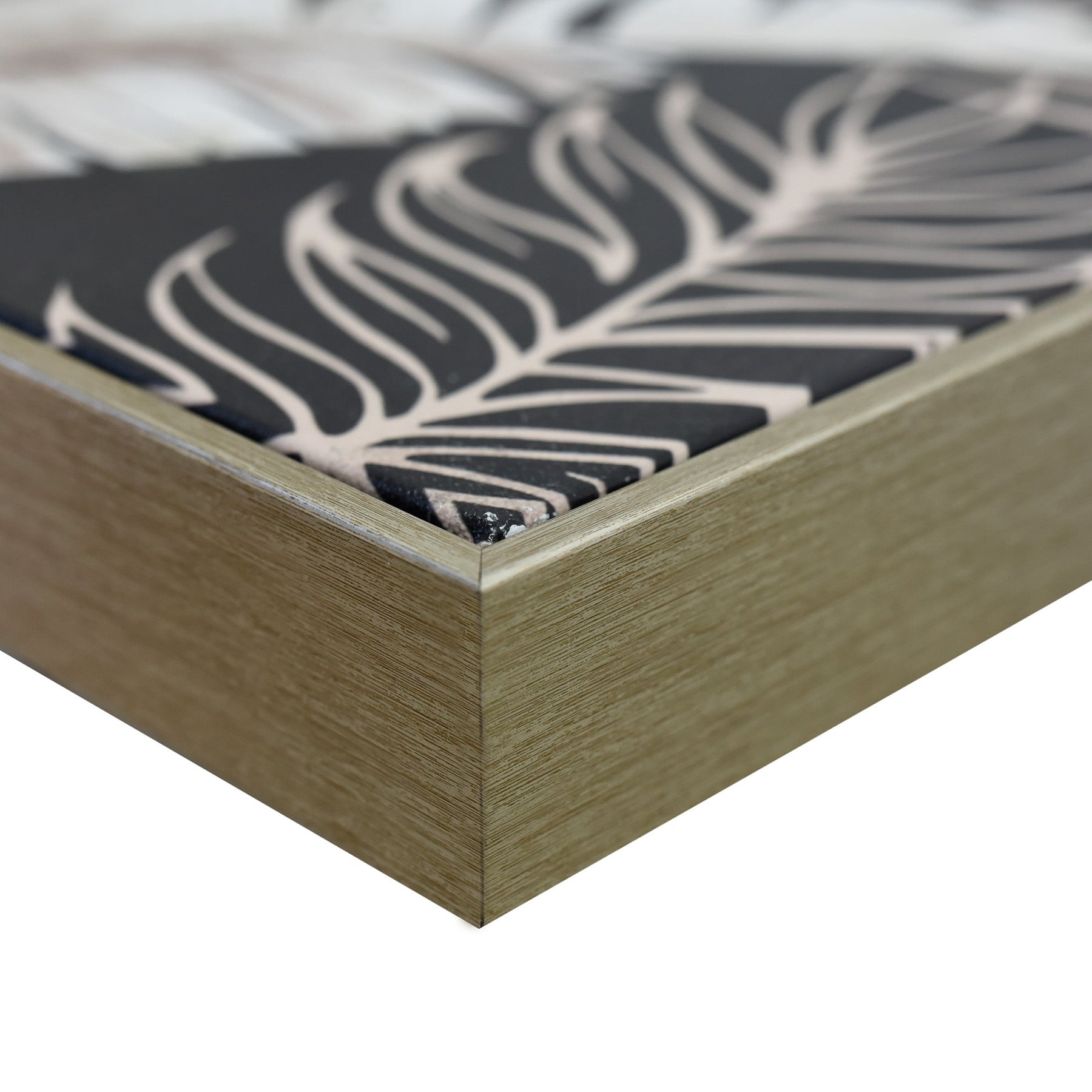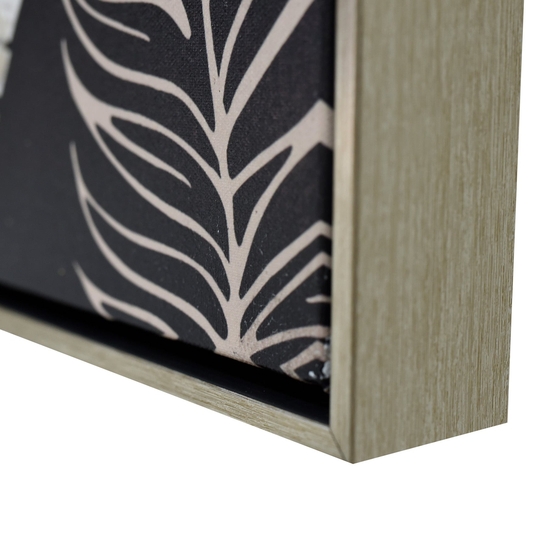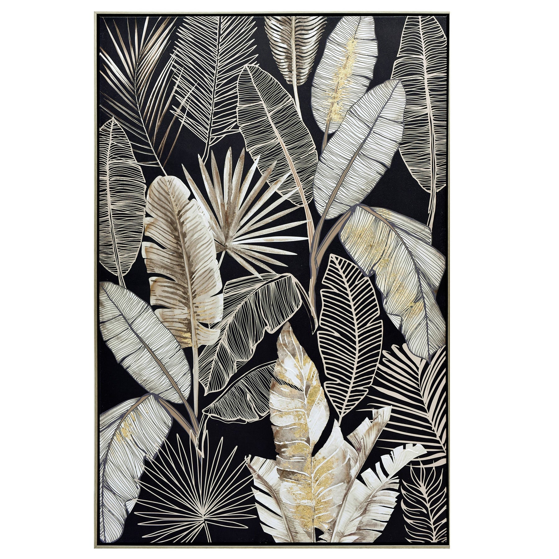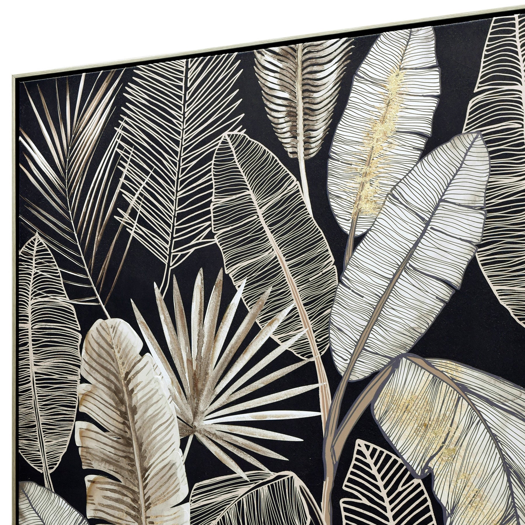 Dive into the mesmerizing contrasts of "Gilded Silhouettes", where soft beige and cream floral leaves elegantly emerge from the profound depths of a black canvas. The leaves, representing various species, are rendered with meticulous care, capturing the essence of nature's beauty. This artwork is a harmonious blend of 50% hand-painted elements and print, ensuring each detail is accentuated. The touch of gold highlights adds a layer of opulence, making the leaves gleam and shimmer when light kisses them. Encased in a champagne-hued frame, the artwork exudes a sense of luxury and sophistication. "Gilded Silhouettes" is more than just a visual treat; it's an ode to the delicate intricacies of nature, portrayed against the starkness of night, creating a captivating dance of light and shadow.