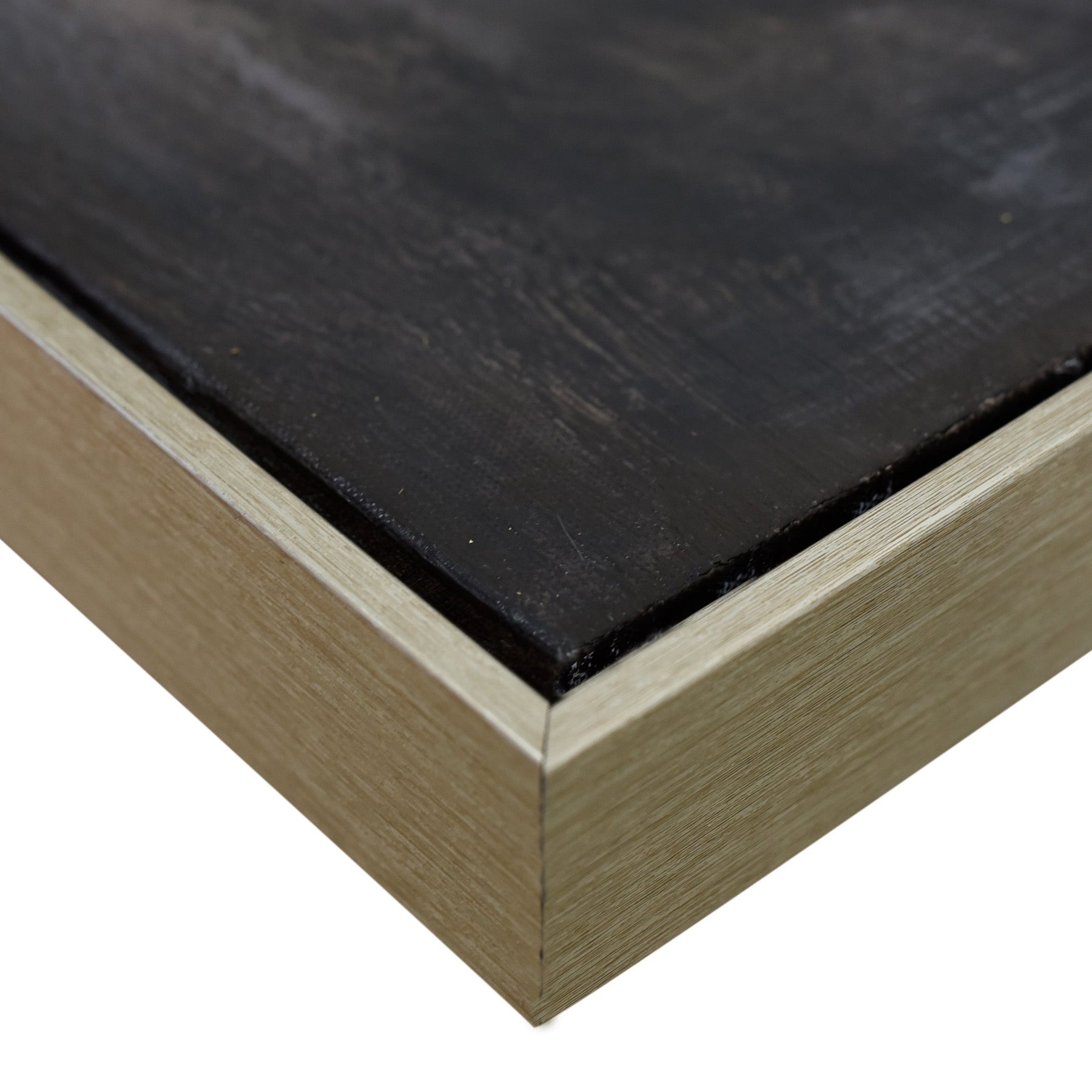 Stretched and gallery wrapped around a wooden stretcher and finished with a floating frame. There is a gap between the frame and print, which creates the floating effect and literally makes the canvas print stand out even more.