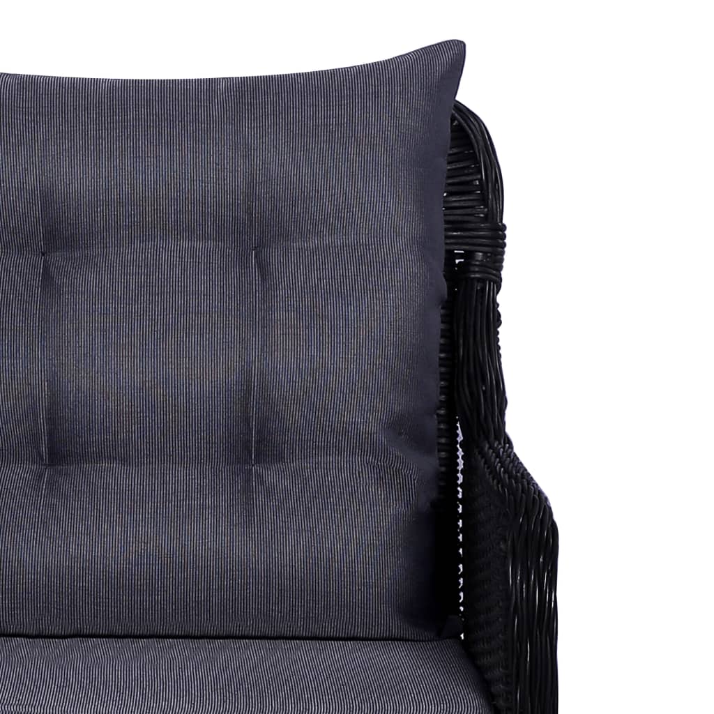 - Material: Powder-coated steel, poly rattan, solid acacia wood