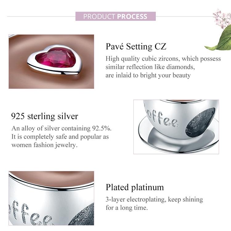 • 1 x 925 Sterling Silver Coffee Cup Beaded Bracelet Charm