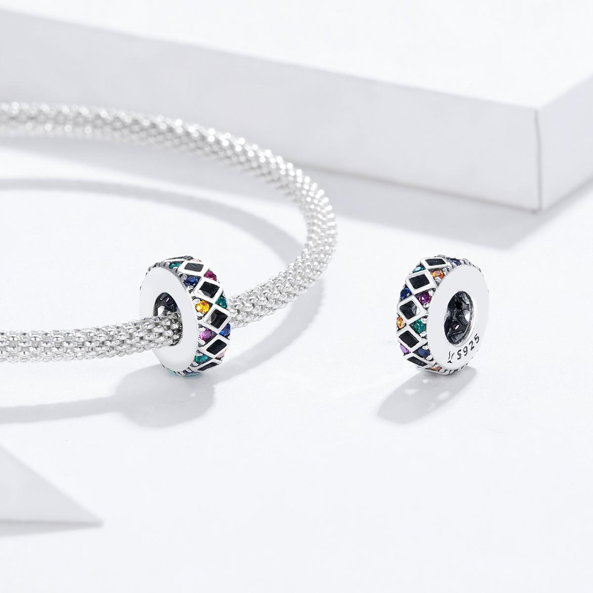 • 1 x 925 Sterling Silver Colorful Flag Beads For Diy Bracelets Necklaces